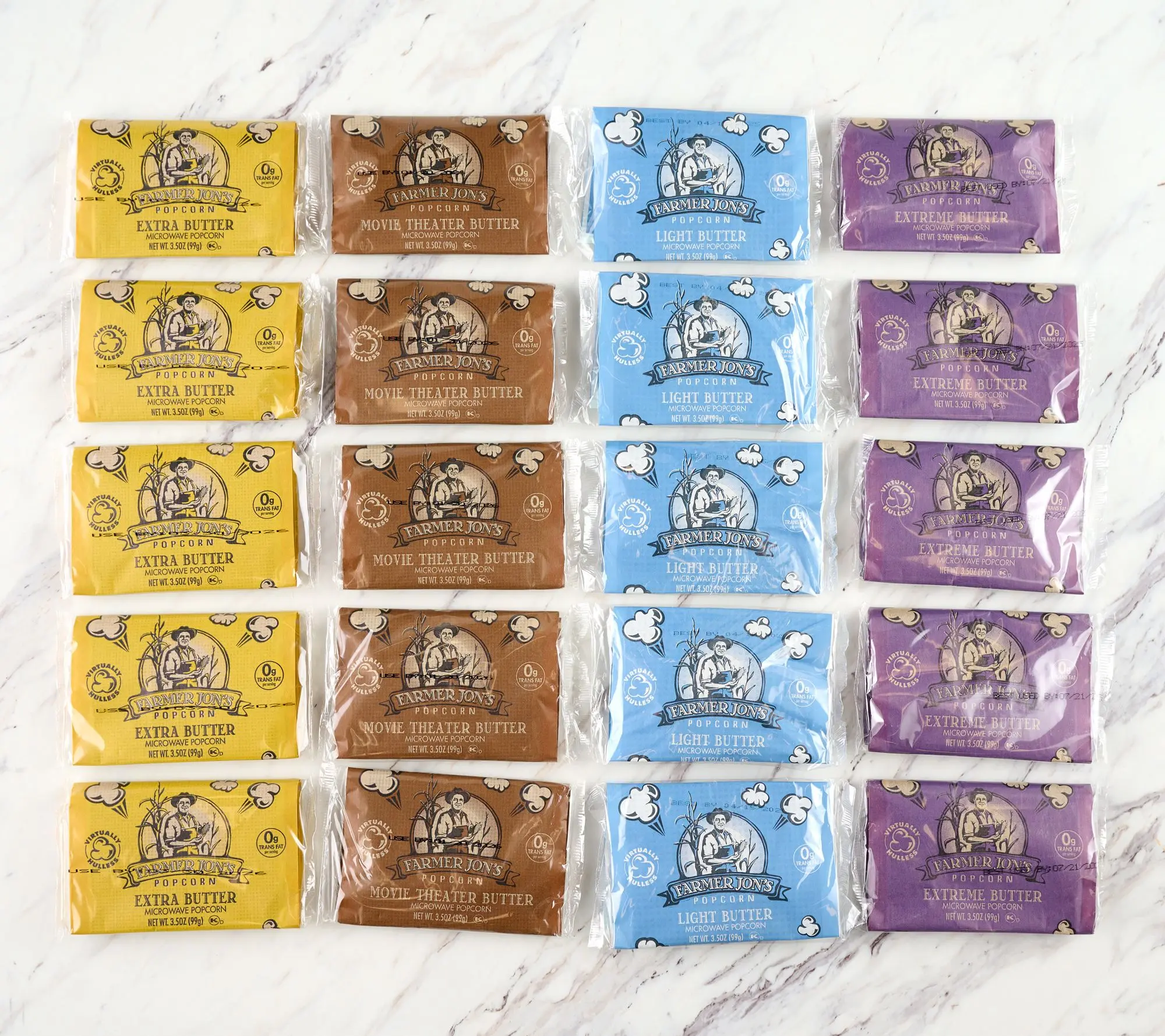 : appeal to everybody's taste with five bags each of Movie Theater Butter, Light Butter, Extra Butter, and Extreme Butter.