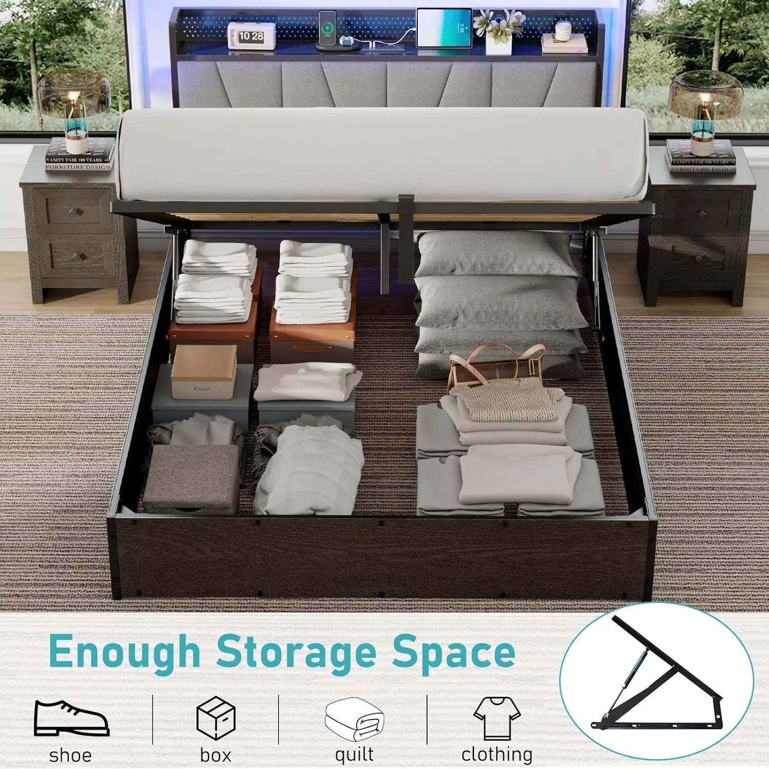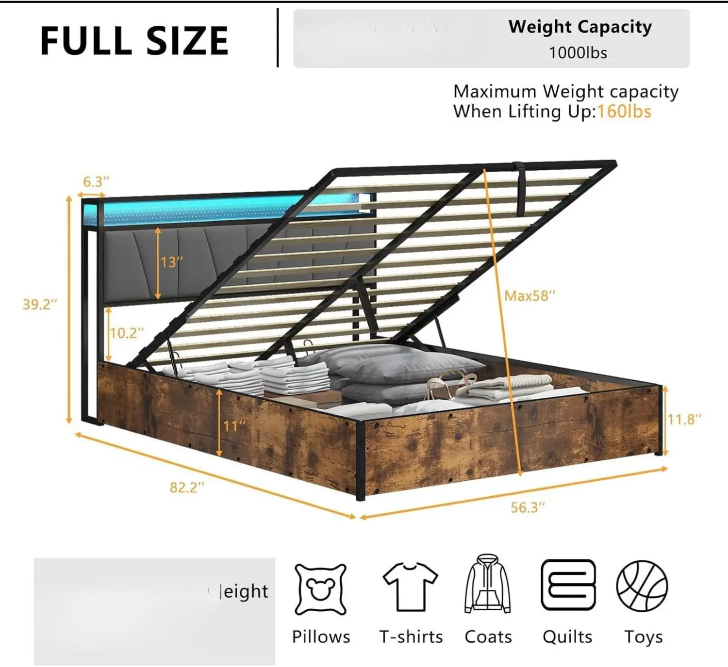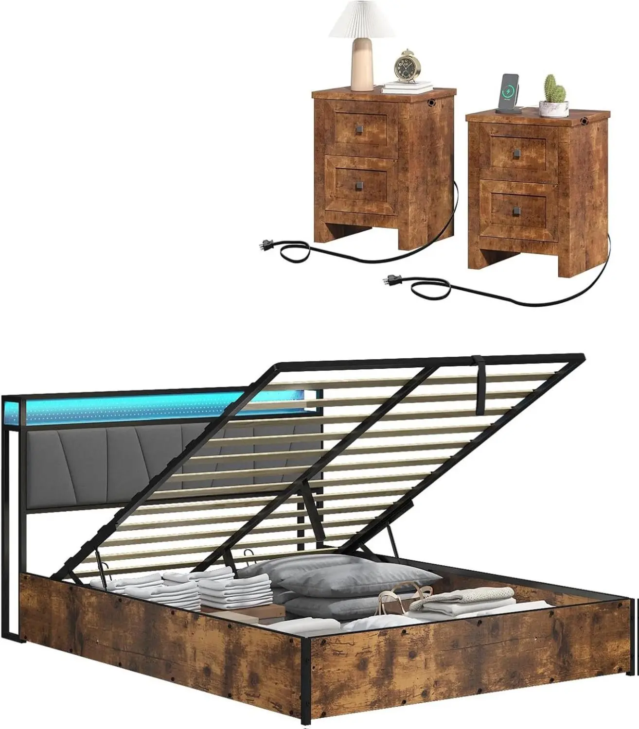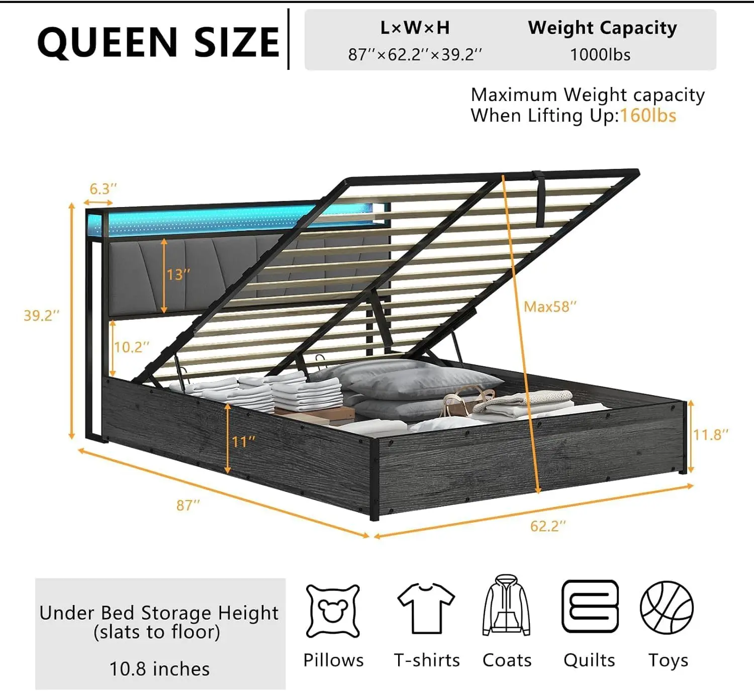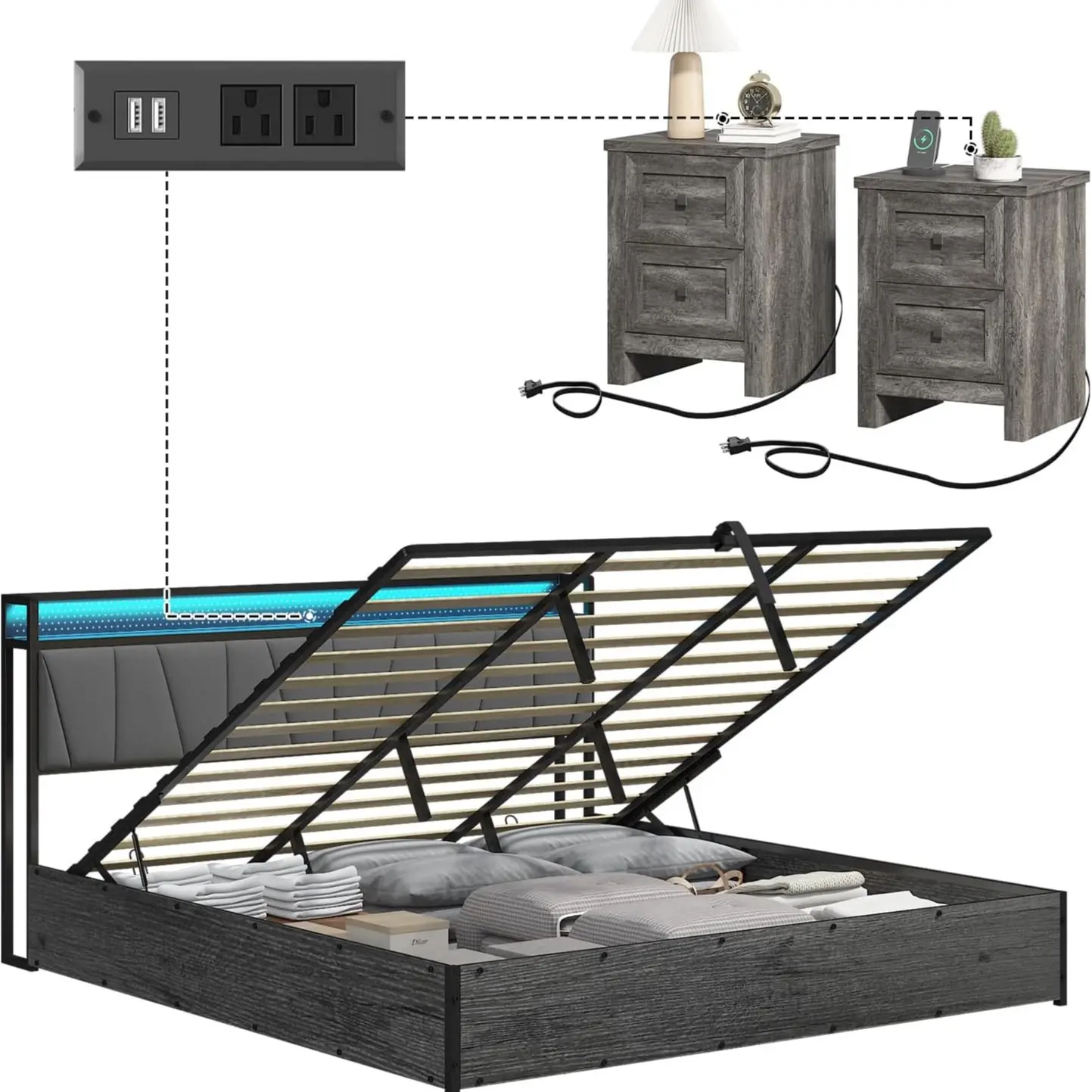 ·Ample Storage: End table includes two smooth-sliding drawers, ideal for keeping your essentials organized. The wooden platform bed frame features a lift-up hydraulic storage system, providing ample hidden space and keeping your bedroom tidy