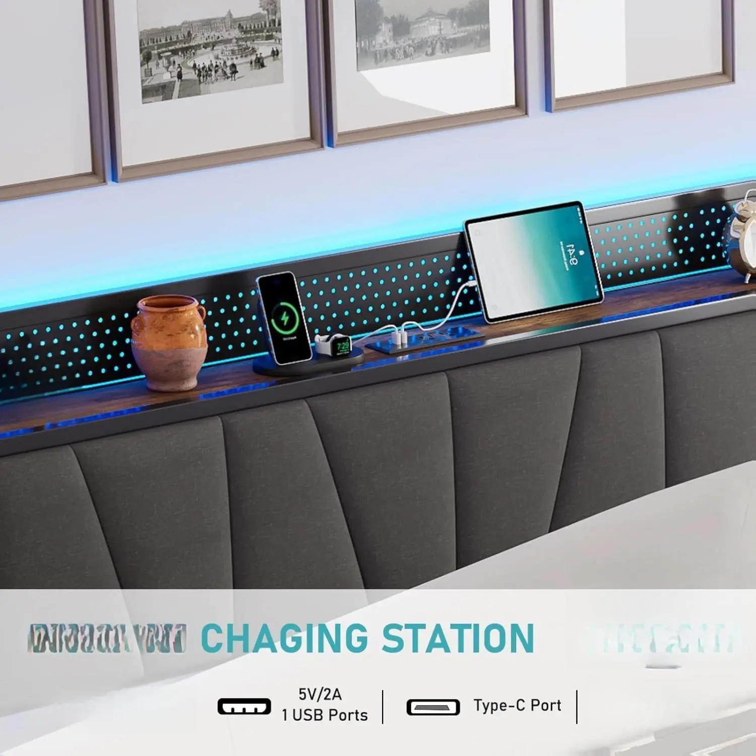·Smart Charging & LED Ambiance: The nightstand comes with 2 AC outlets and 2 USB ports, allowing easy device charging without leaving your bed. The bed frame is equipped with an upgraded LED strip offering 60,000+ colors