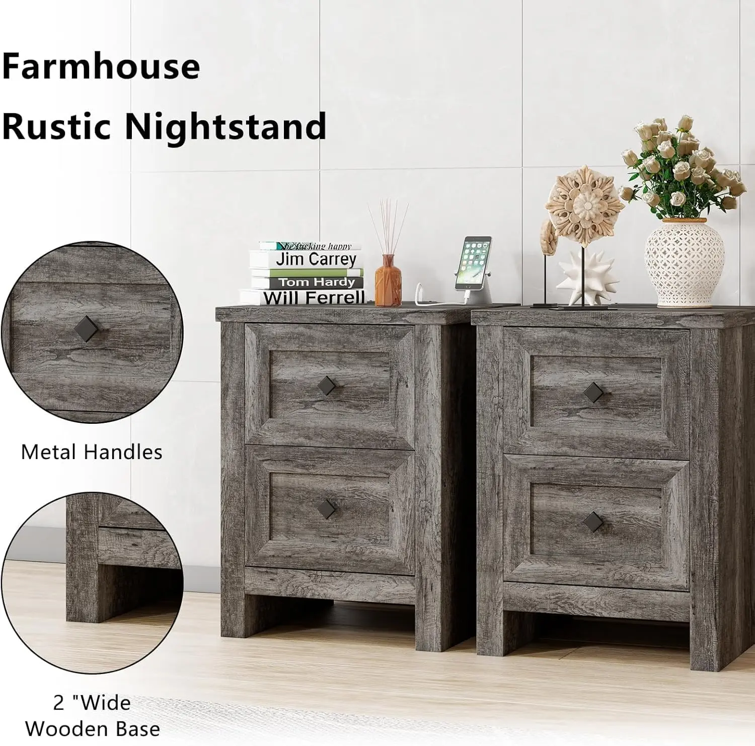 ·Heavy Sense & Farmhouse Design: This rustic wooden farmhouse nightstand and LED bed frame set perfectly blend classic farmhouse aesthetics with modern convenience, elevating your bedroom decor