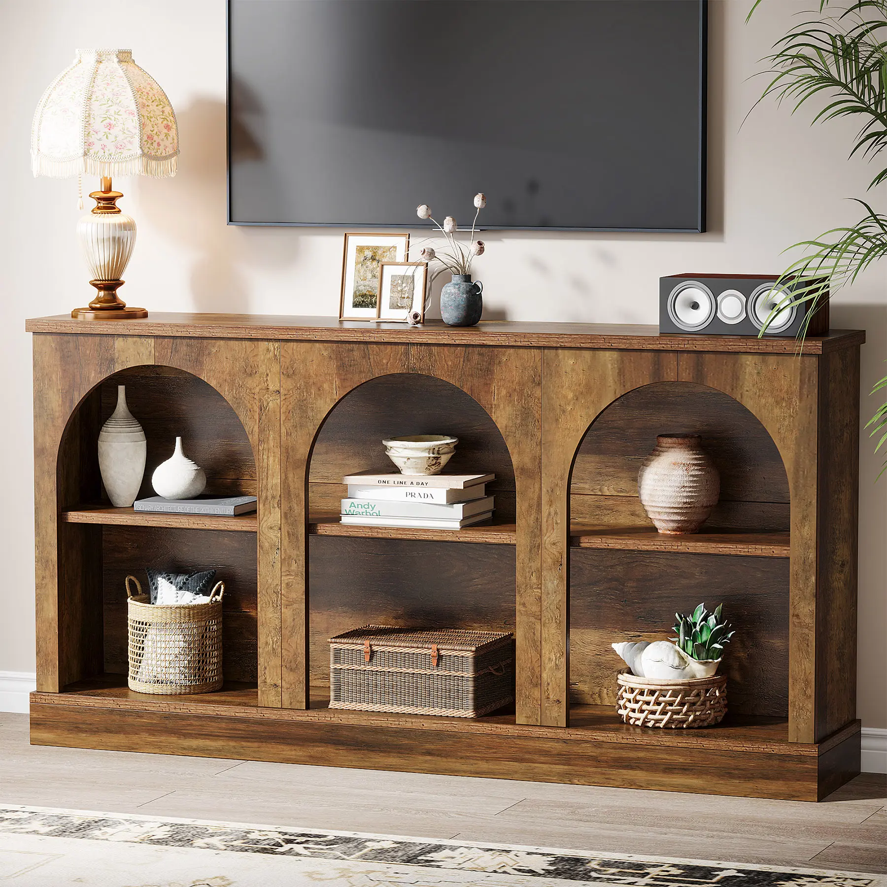 ·Vintage Charm: Admire the rustic brown finish of this console table, which infuses every room with a touch of timeless elegance. The gracefully arched designs on the front add a sophisticated flair that harmoniously integrates with your home’s existing decor.