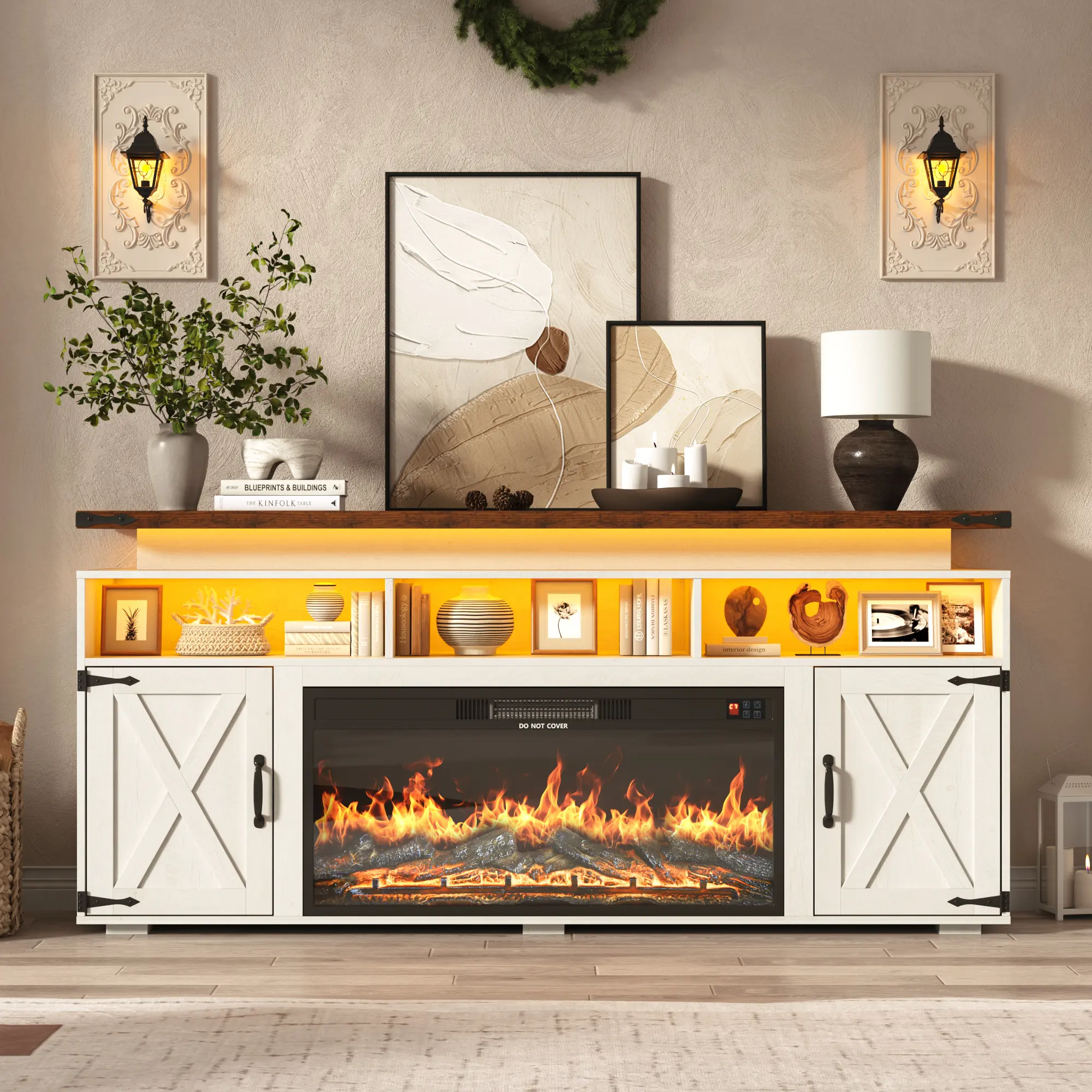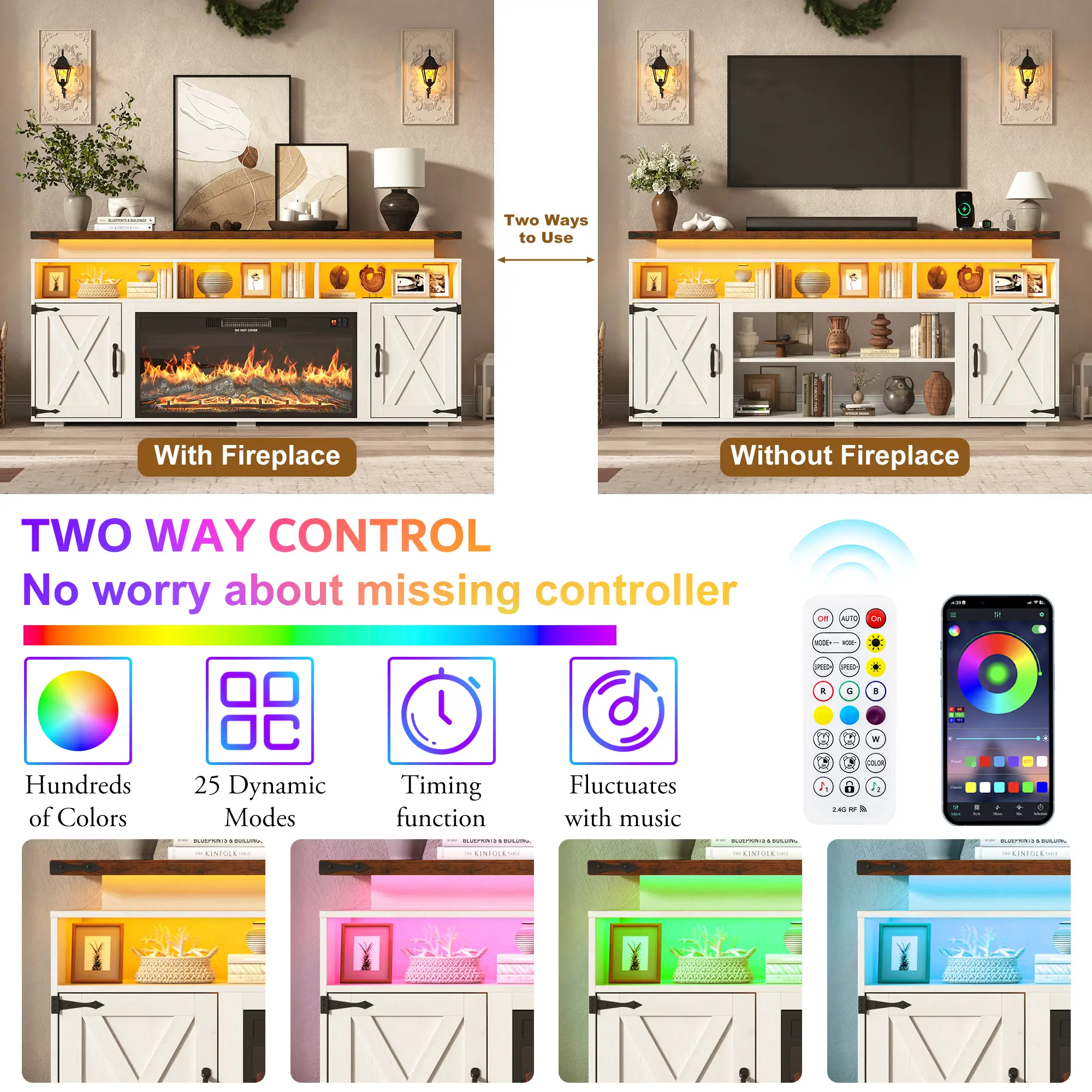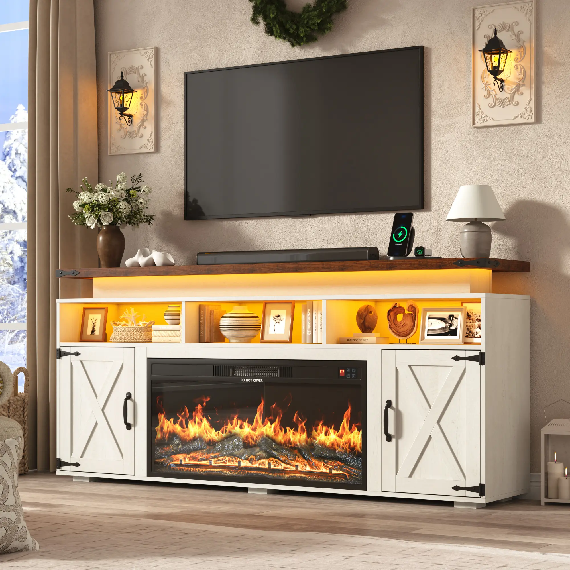 Sturdy MDF Build with Reliable Safety Protection: Designed with reinforced double top panels, this unit supports up to 300 lbs with confidence. Smooth, quiet rails and soft-close hinges help prevent finger pinches. The fireplace incorporates built-in overheat protection and meets ETL/FCC safety certifications, providing dependable performance and peace of mind.