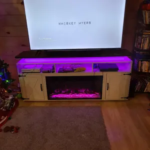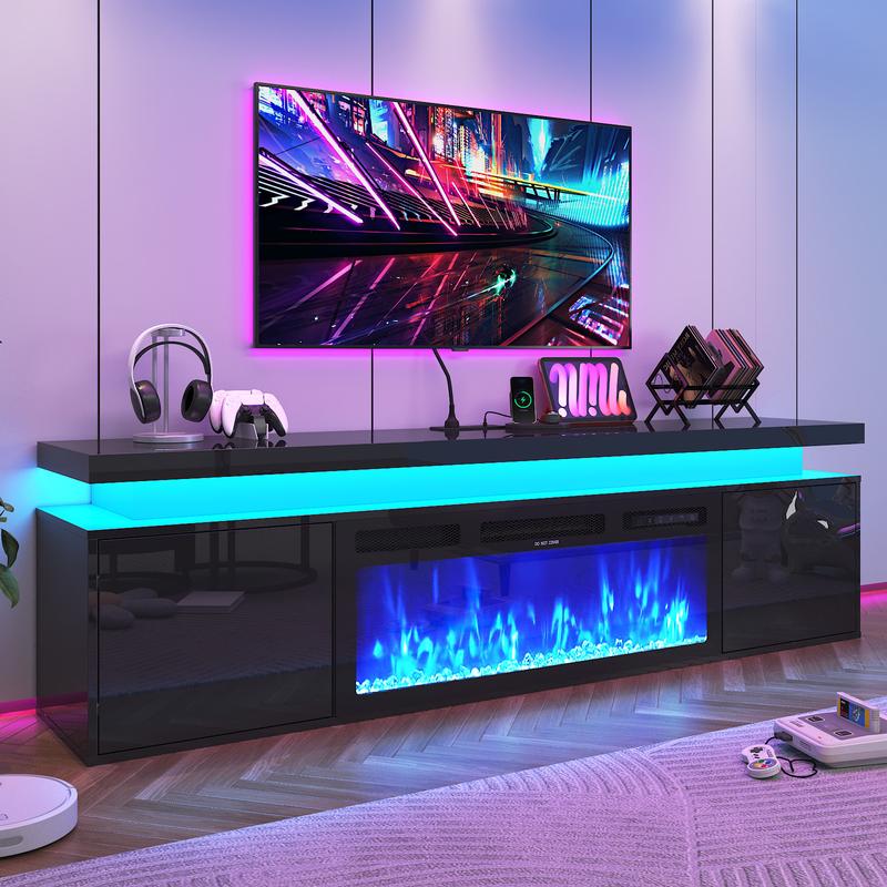 This Blotout highlight of this TV cabinet is that you can freely choose to install it in a hanging or floor-standing manner. Secondly, there are two optional sizes of 70 and 80 inches, and the sizes of the fireplace are 36 and 40 inches respectively, and the fireplace can be controlled remotely. In addition, the top plate is equipped with a socket strip, and the light strip around the bottom of the top plate adds atmosphere.