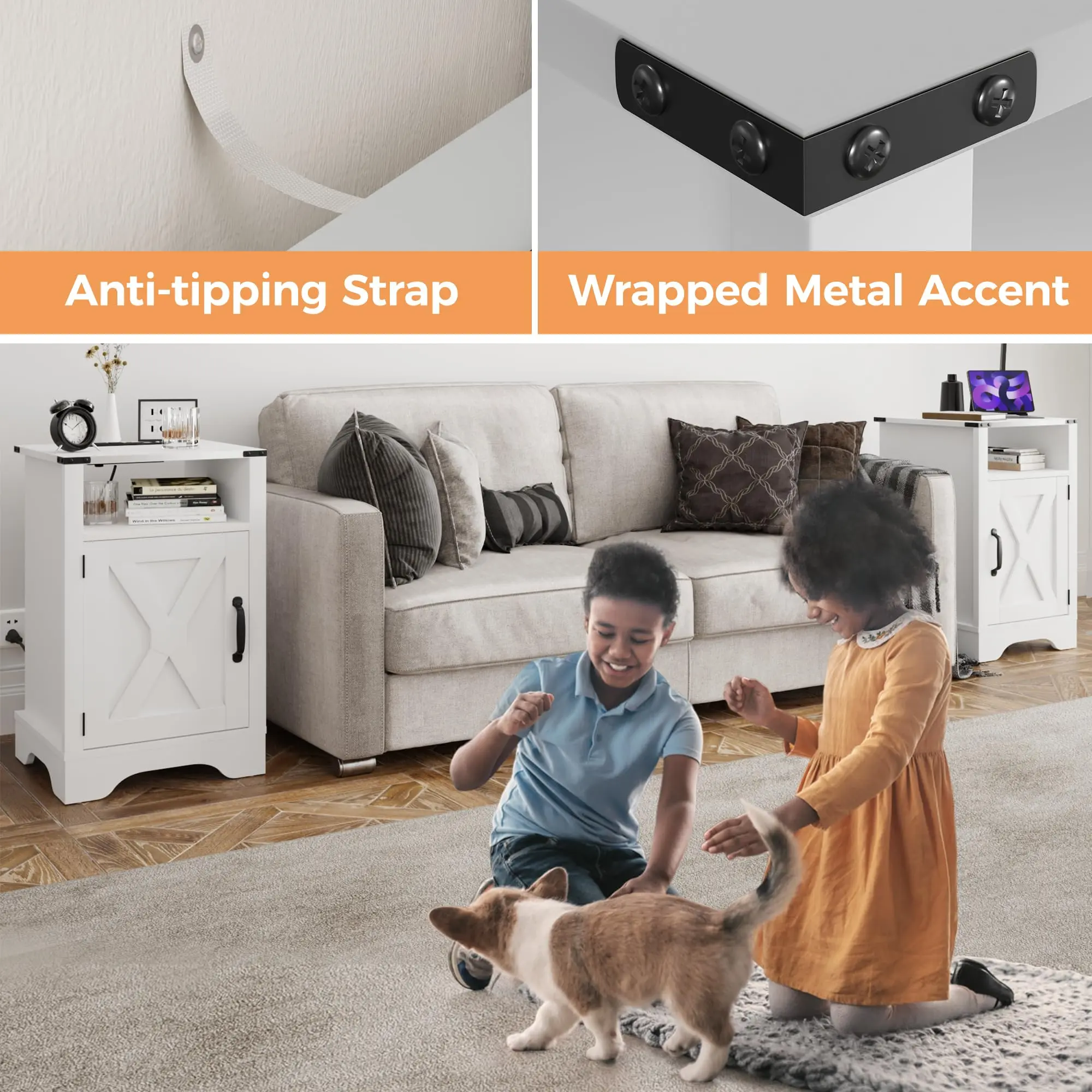 【All About Easy-Peasy Access! 】Product Size: 16 "D x 16 "W x 25 "H.The side table greets you with a generous 180° opening with metal hinges for easy access. The doors are held in place by a magnetic metal latch, adding a touch of convenience and security.