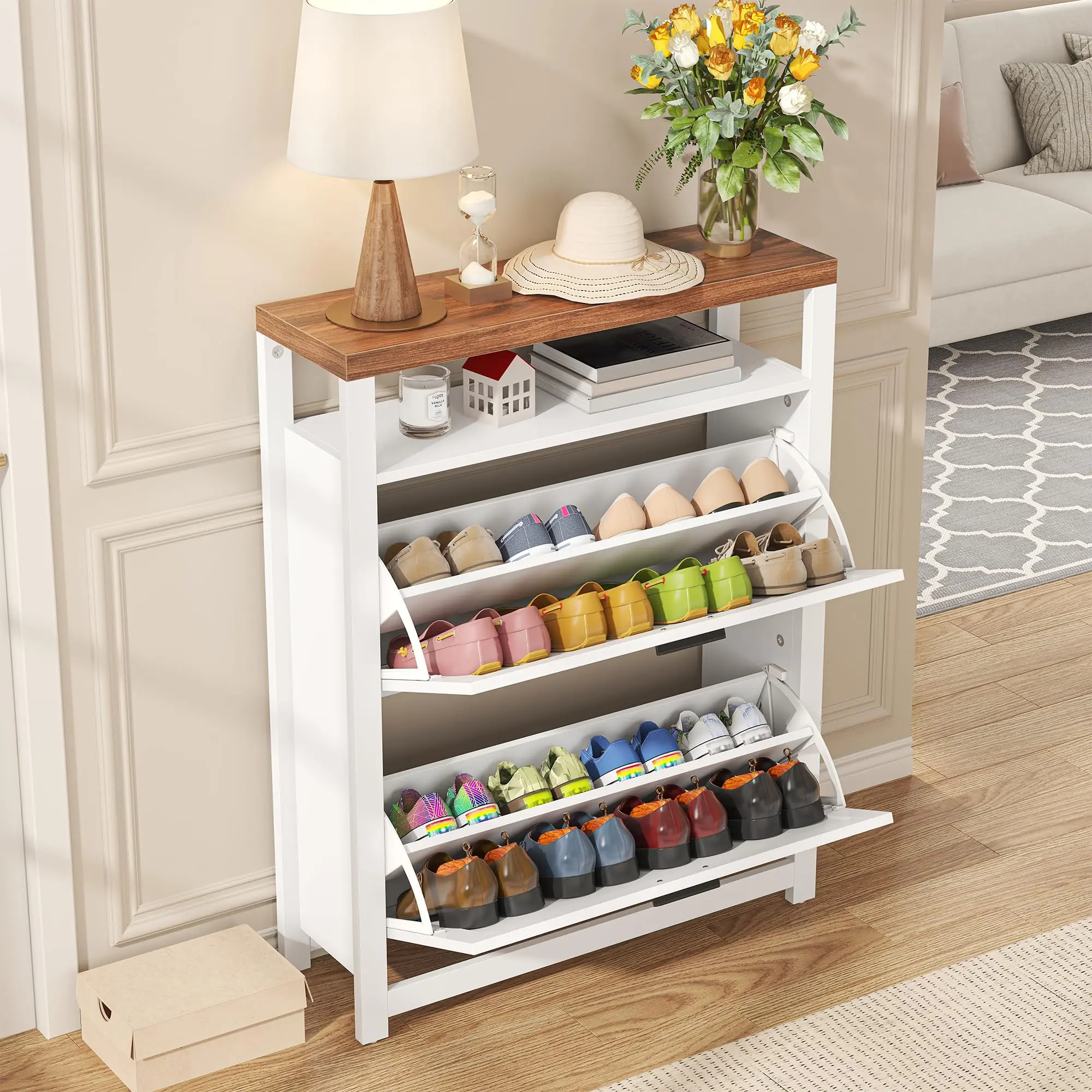 ·Space Saving: Our Slim Shoe Cabinet features a space-saving flip-up drawer design that takes up less floor space than a regular shoe rack. Ideal for any narrow entry space, it keeps your shoes out of the dust