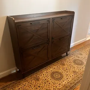 I am in love with this! It's so beautiful and Convenient right by our door to store and conceal our shoes.