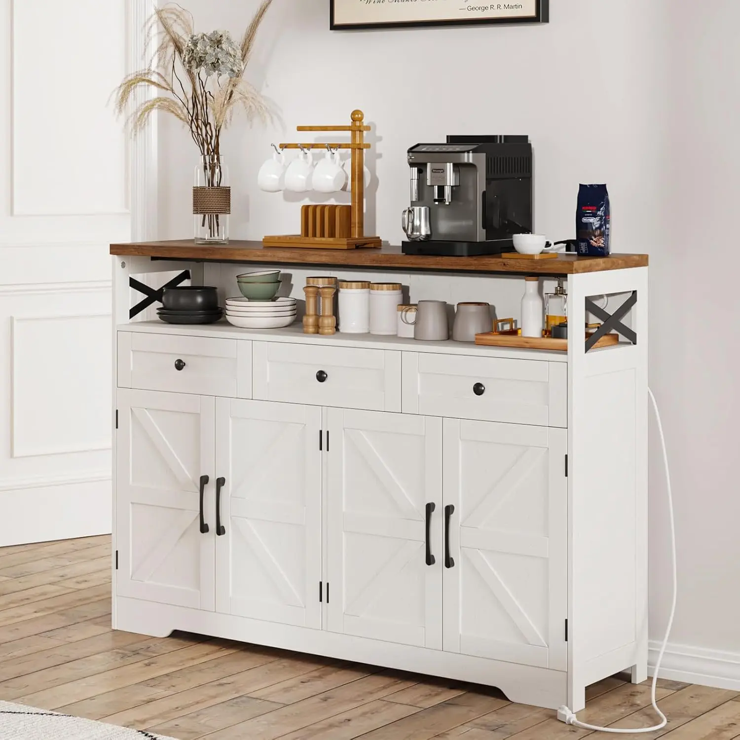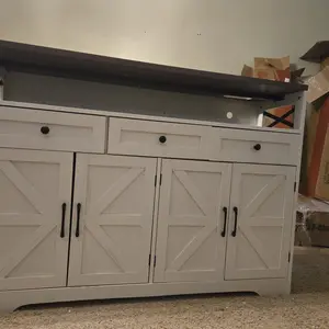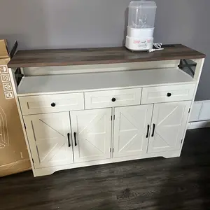STURDY AND STABLE: This farmhouse buffet cabinet is constructed with high-end engineered wood and strengthened wood bottom, which ensures exceptional stability and durability, promising years of reliable service. The tabletop can support up to 110lbs. Overall Dimensions: 13.8"D x 51.2"W x 37.4"H
