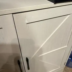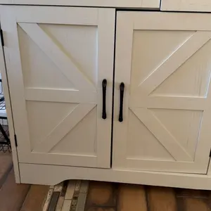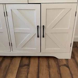 FARMHOUSE STYLE: Decorated with black metal cross bar, this white wooden storage cabinet will add a touch of industrial accent to your home decor. It will make your home a charming and chic place to stay!