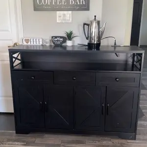 AMPLE STORAGE SPACE: Not Enough Storage Space in the home? Get tired of a cluttered room? This Large sideboard buffet cabinet is designed with 1 open shelf, 4 doors, and 3 drawers, which offers ample storage space for different sizes of daily essentials to be organized and easily accessible