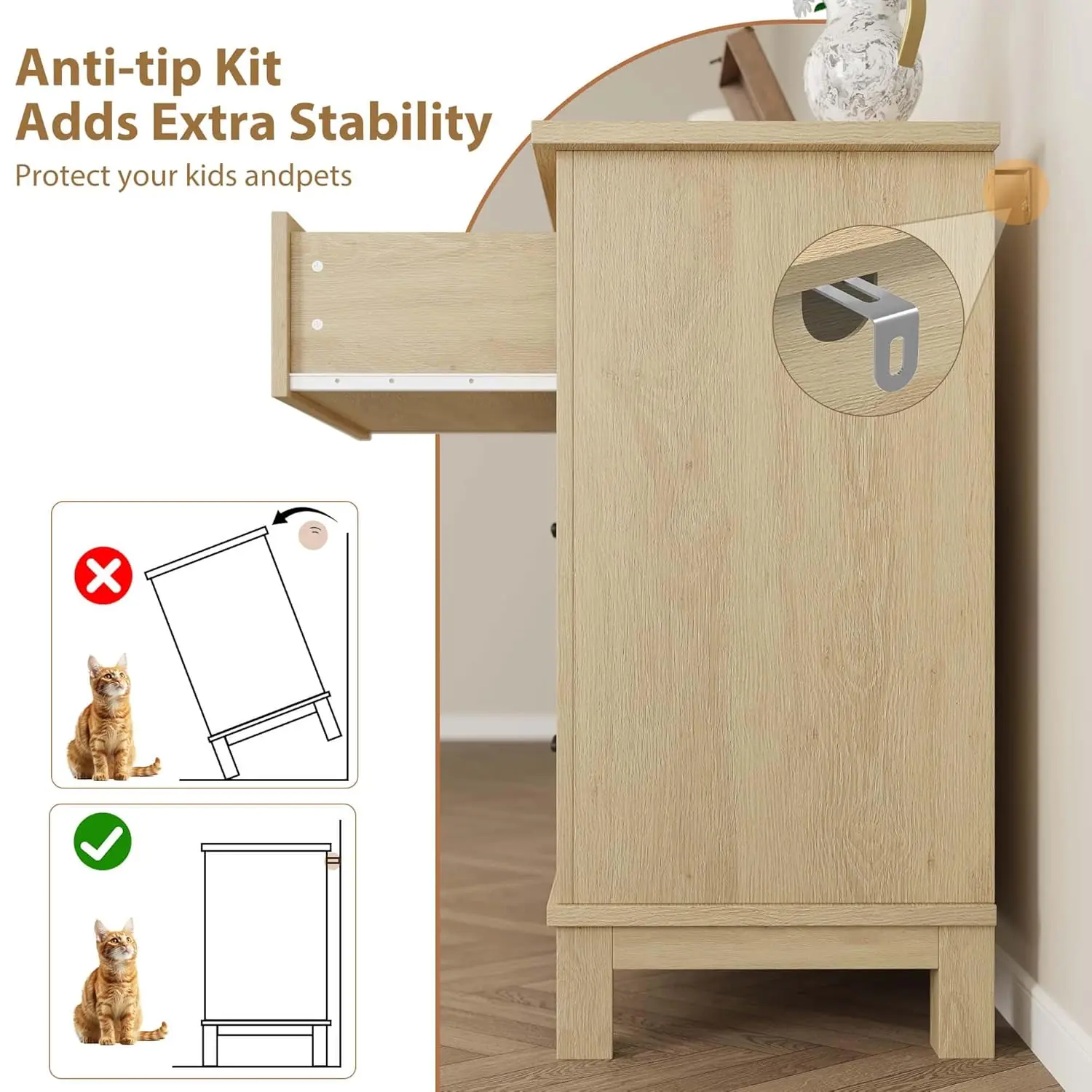 Our dresser is constructed from high-quality MDF engineered wood, ensuring exceptional strength and durability. The 25 mm thick waterproof tabletop provides excellent stability. The overall dimensions of 47.2 in L x 15.8 in W x 32.1 in H. Additionally, the dresser is equipped with an anti-tipping device for enhanced safety, giving you peace of mind