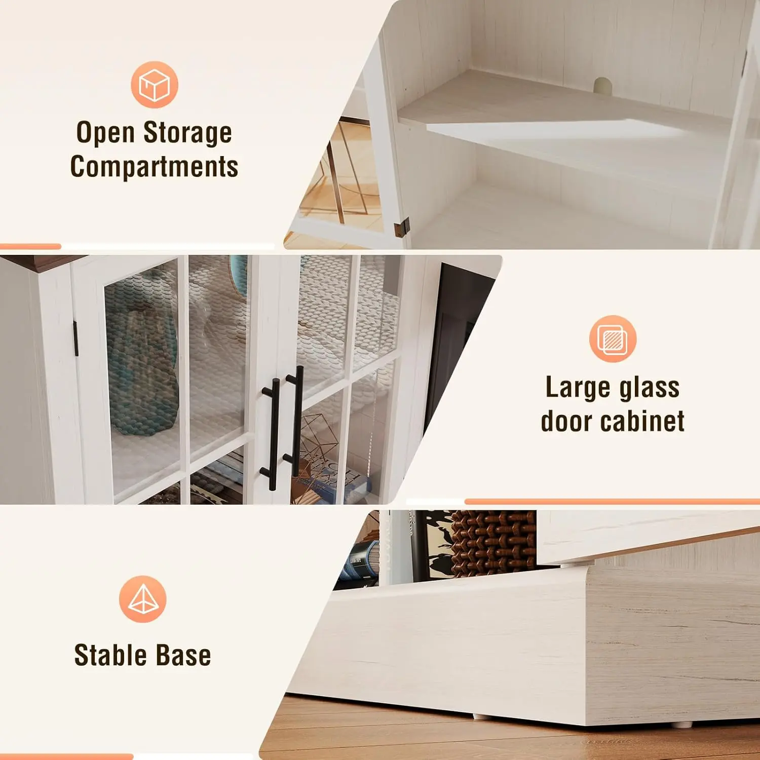 The entertainment center includes an open storage compartment for DVDs and two spacious glass-front cabinets. It also has two adjustable shelves for customizing storage. 📀