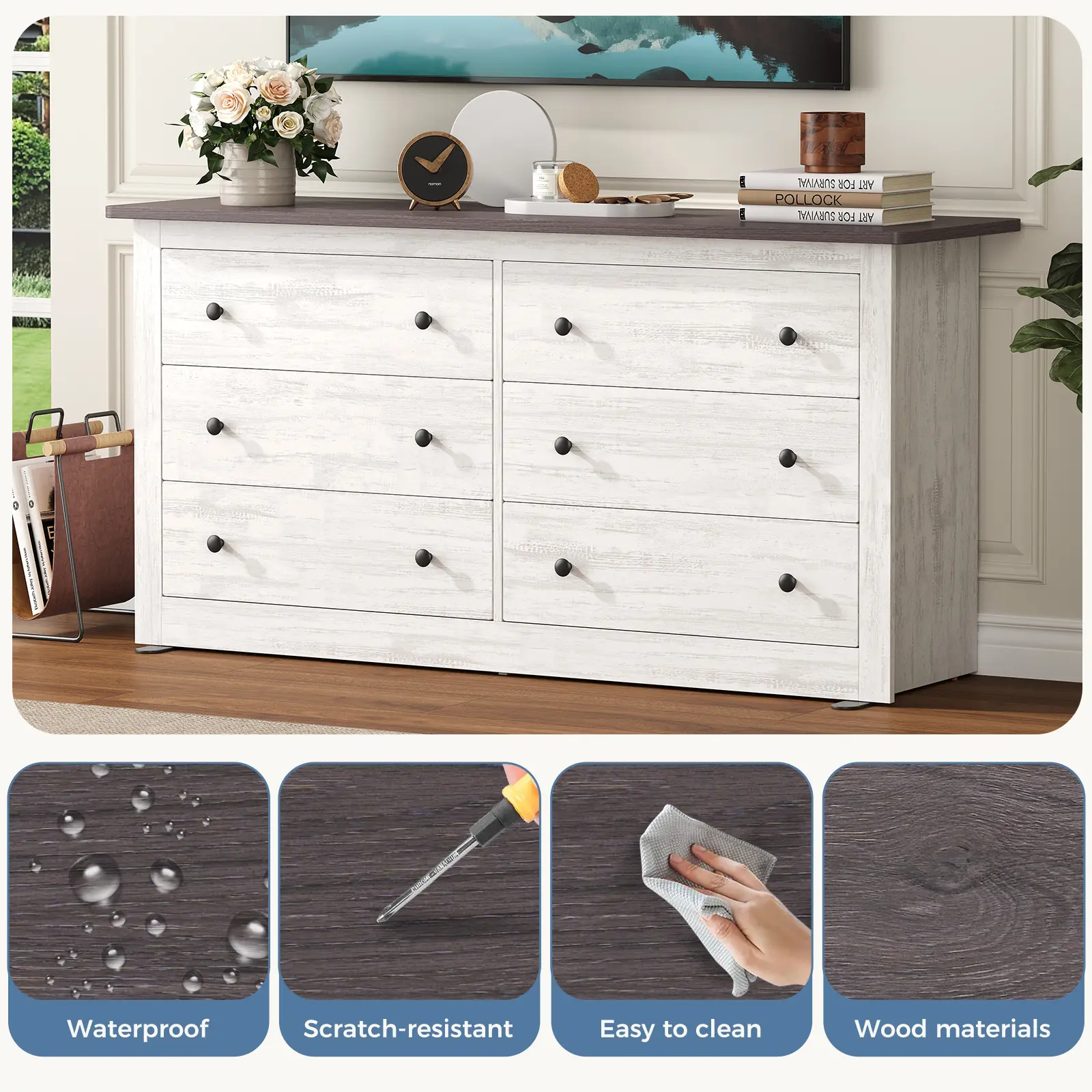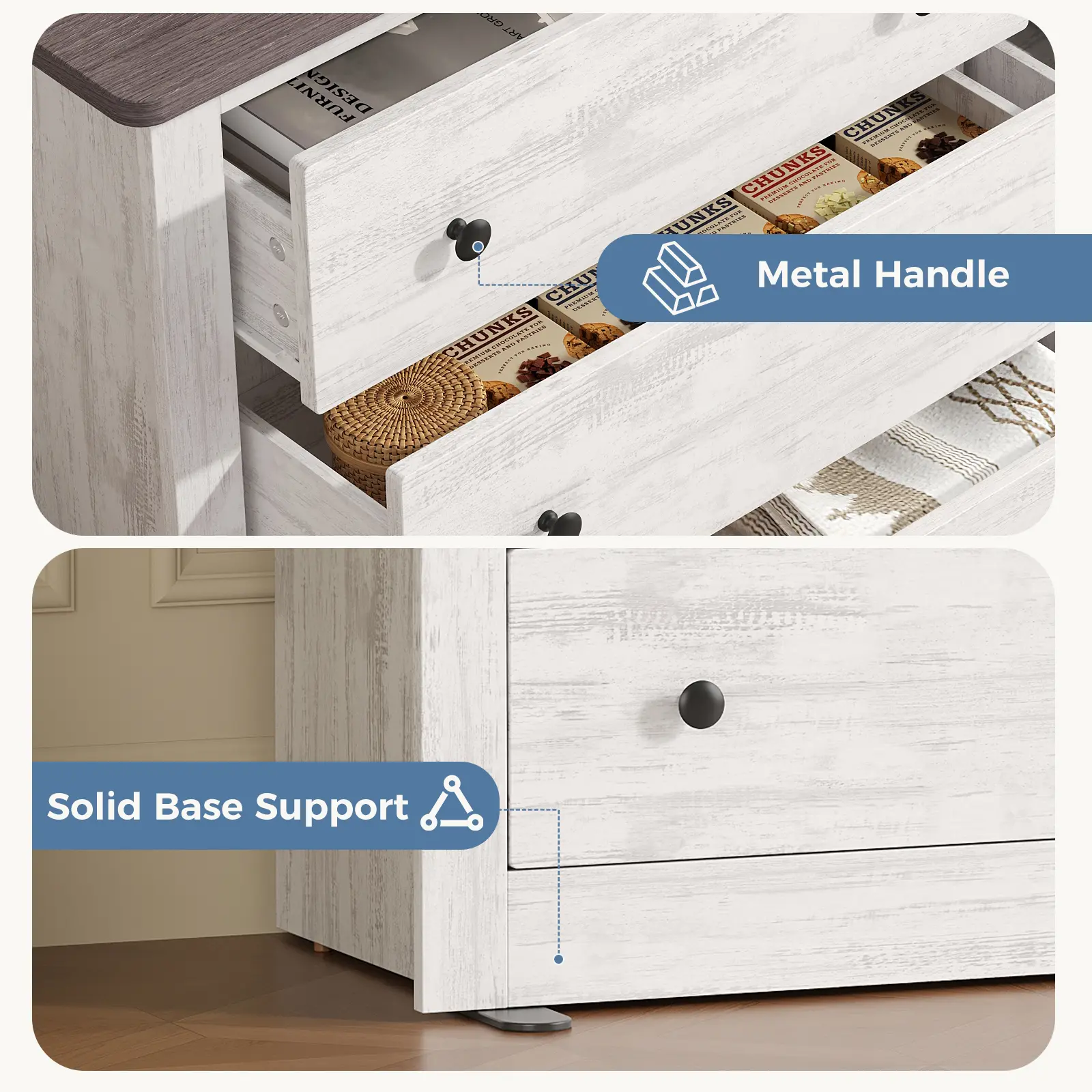 ·Crafted from high-quality MDF material, this dresser features a stable structure that won’t loosen easily. With a weight capacity of 15lbs per drawer and 50lbs for the top, it’s also resistant to deformation, cracking, scratches, and waterproof, ensuring durability for daily use.