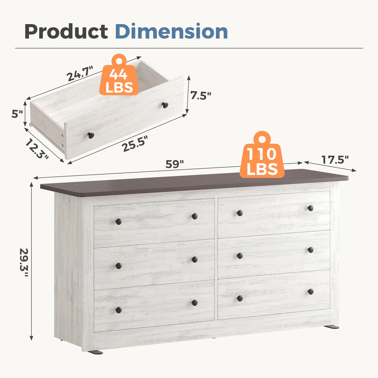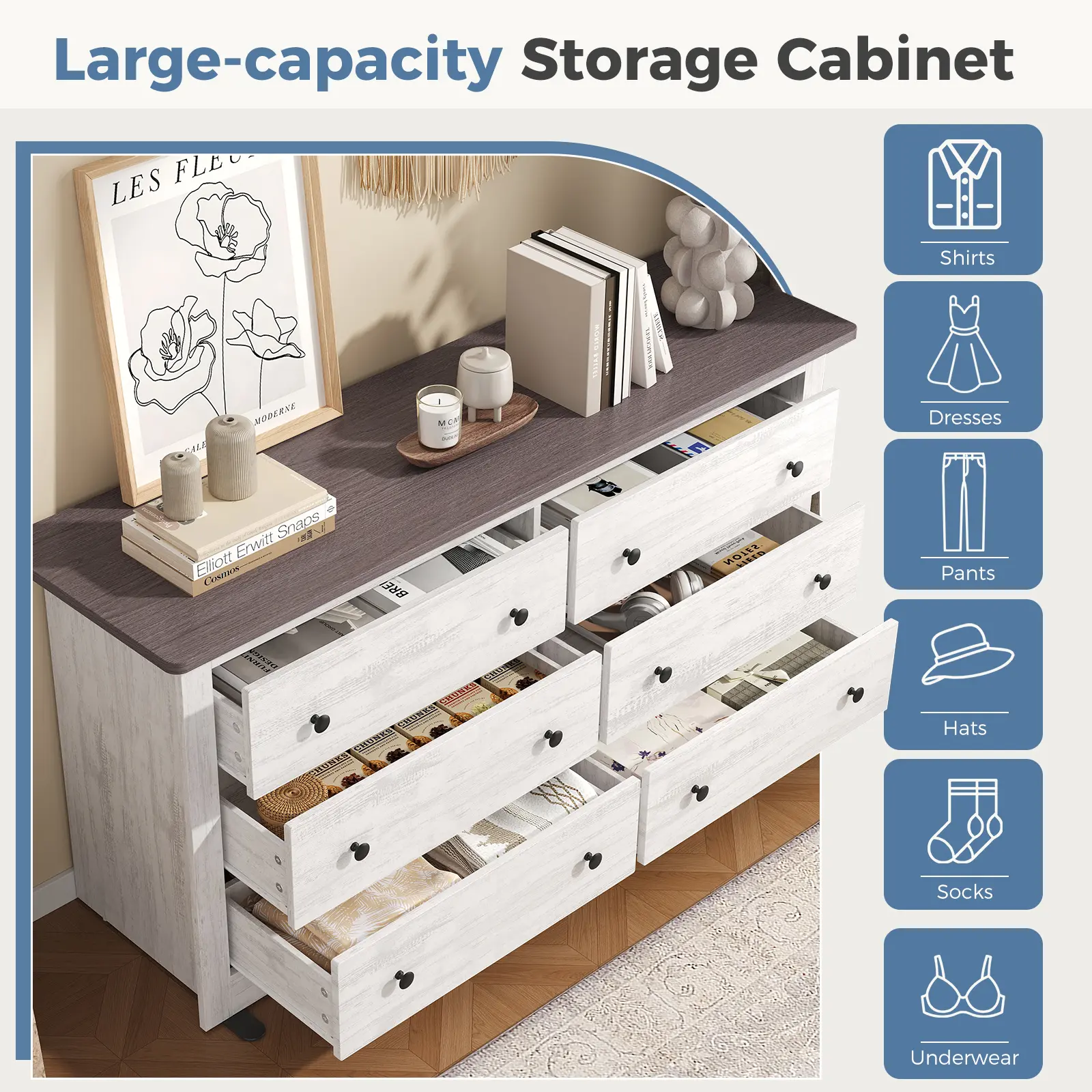 ·Equipped with 6 spacious drawers, the internal space easily accommodates clothes, bed linens, books, and small miscellaneous items. Organized storage keeps things clutter-free, fully meeting daily household storage needs.