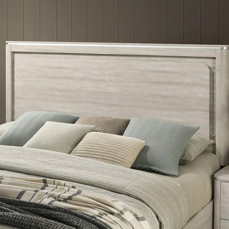 Add modern elegance and ambient lighting to your bedroom with the Farsund Bed. Finished in a soft dusty gray tone, this platform bed features a sleek LED-lit headboard with a built-in touch sensor offering three dimmable light settings—perfect for setting the mood or winding down at night. Smooth curved edges and a minimalist plinth base create a clean, grounded silhouette, while stainless steel finger pulls and English dovetail construction add refined durability.