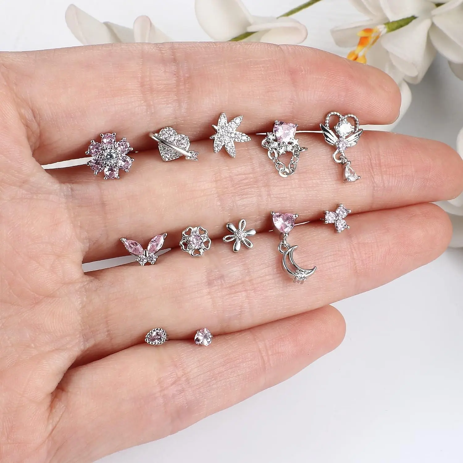 Elevate your style with Fansilver's 12PCS 20G Nose Rings. Crafted from surgical stainless steel, these L-shaped nose studs are perfect for both women and men. Each set includes a variety of designs: CZ Heart, Butterfly, Flower, Leaf, and Moon. These cute nose piercings add a touch of elegance to any outfit. 🌸