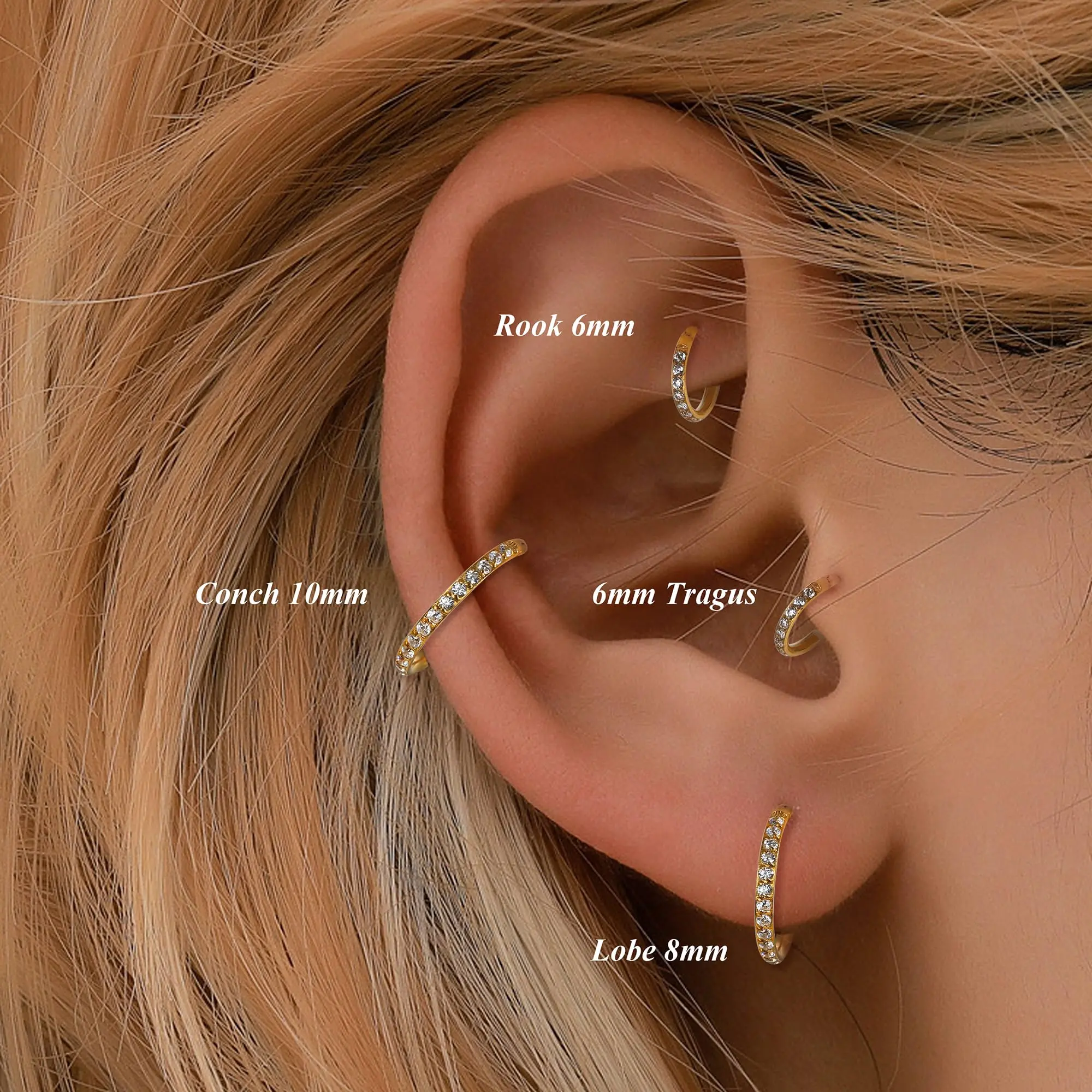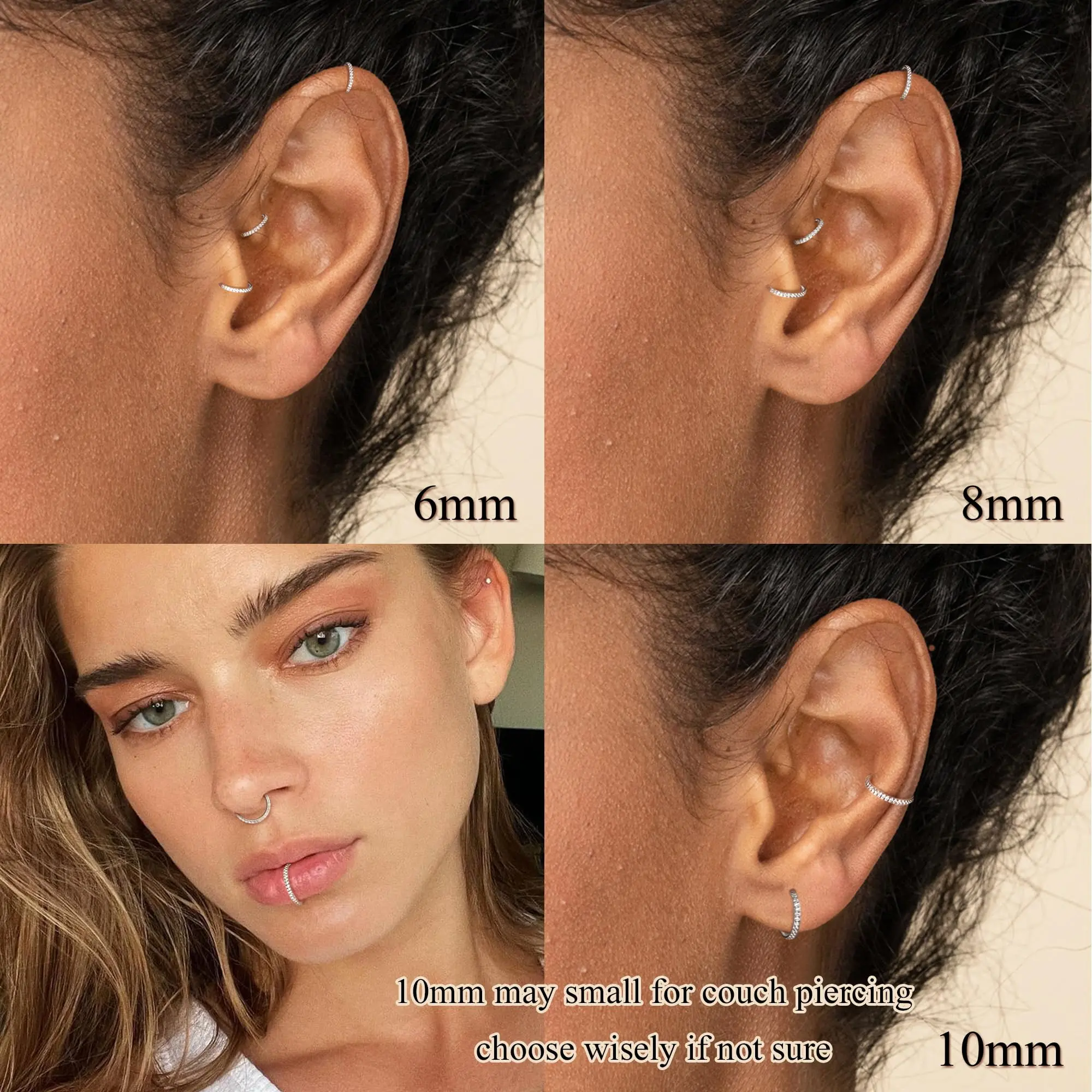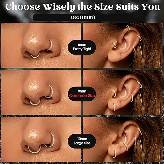 ·MULTIPLE FIT: The hinged clicker hoops can fit multiple piercing hole, the 6mm hoops fit as tragus earring and rook earrings; the 8mm hoops fit as nose rings, septum rings, daith helix piercing jewelry; the 10mm hoops fit for ear lobe; cartilage earring, etc.
