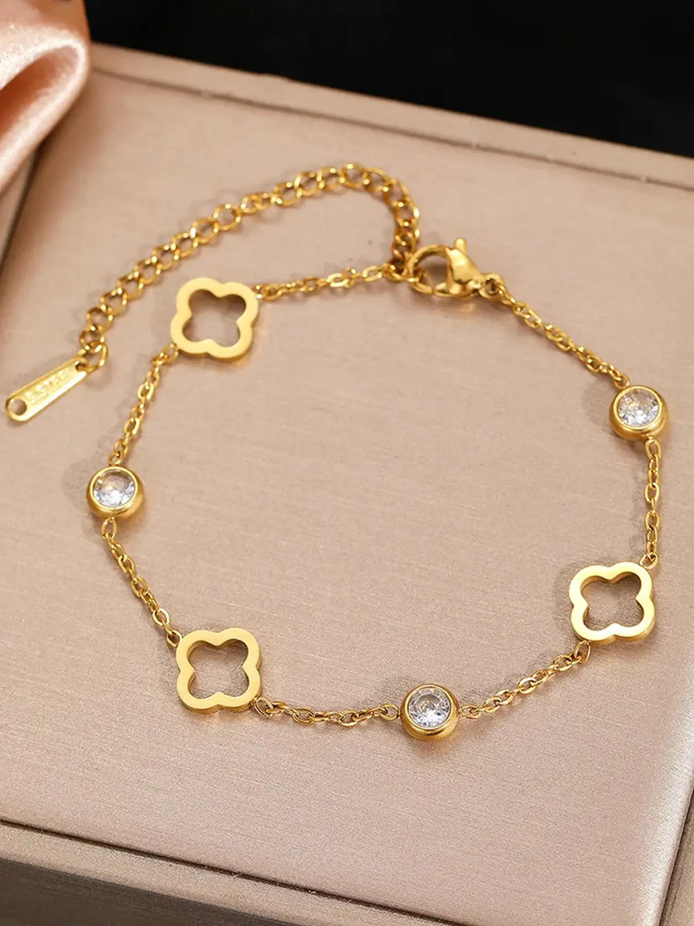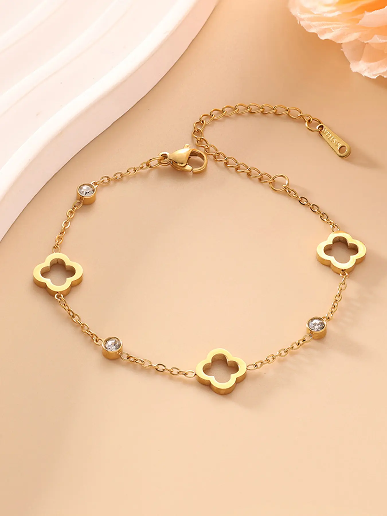 【Charm Detail】: Showcases a hollow lucky clover charm that symbolizes good fortune, appealing to those who appreciate meaningful accessories.