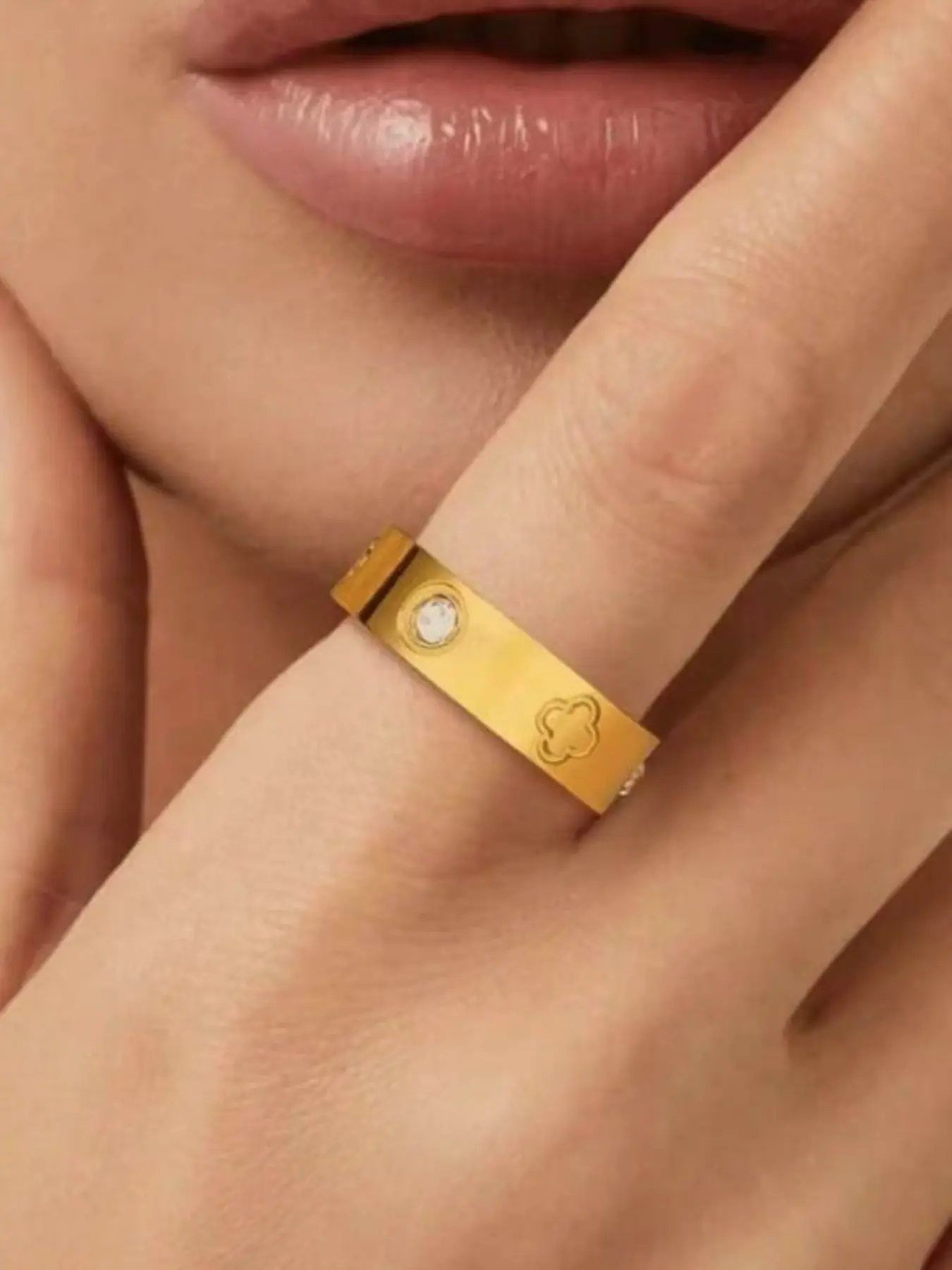 5. Fashion Luxury Four-Leaf Clover Diamond Titanium Steel Ring, Wedding Promise Rings, Colorfast Design, Stylish Finger Ring for Women, Elegant Jewelry Accessory