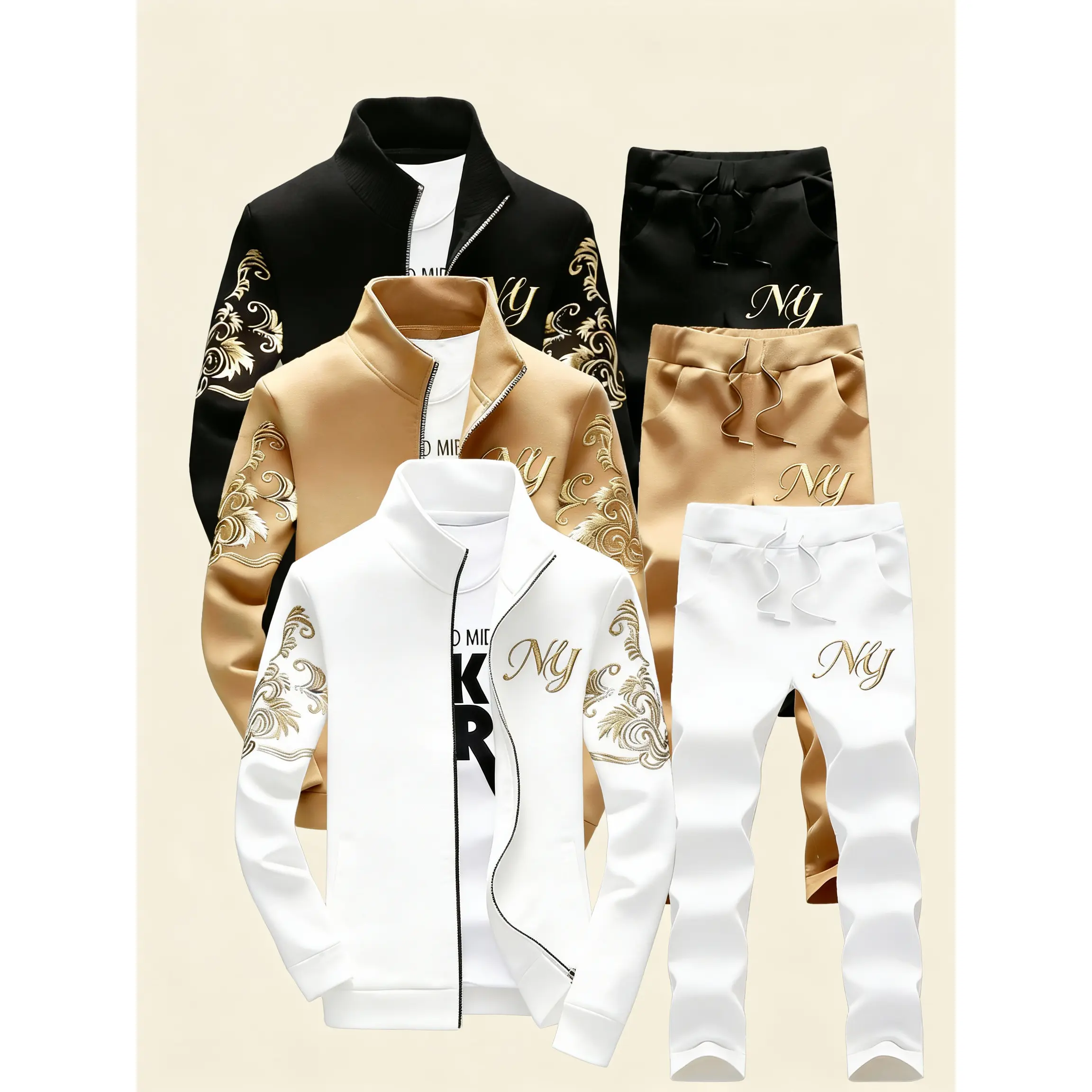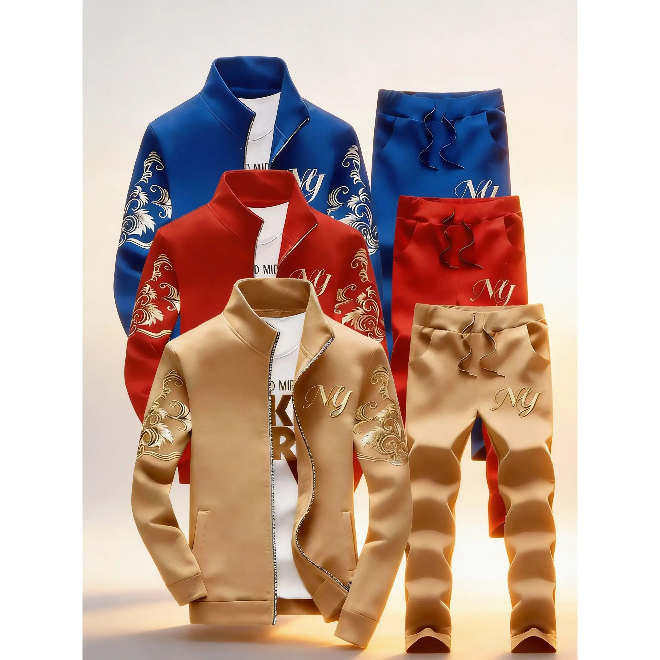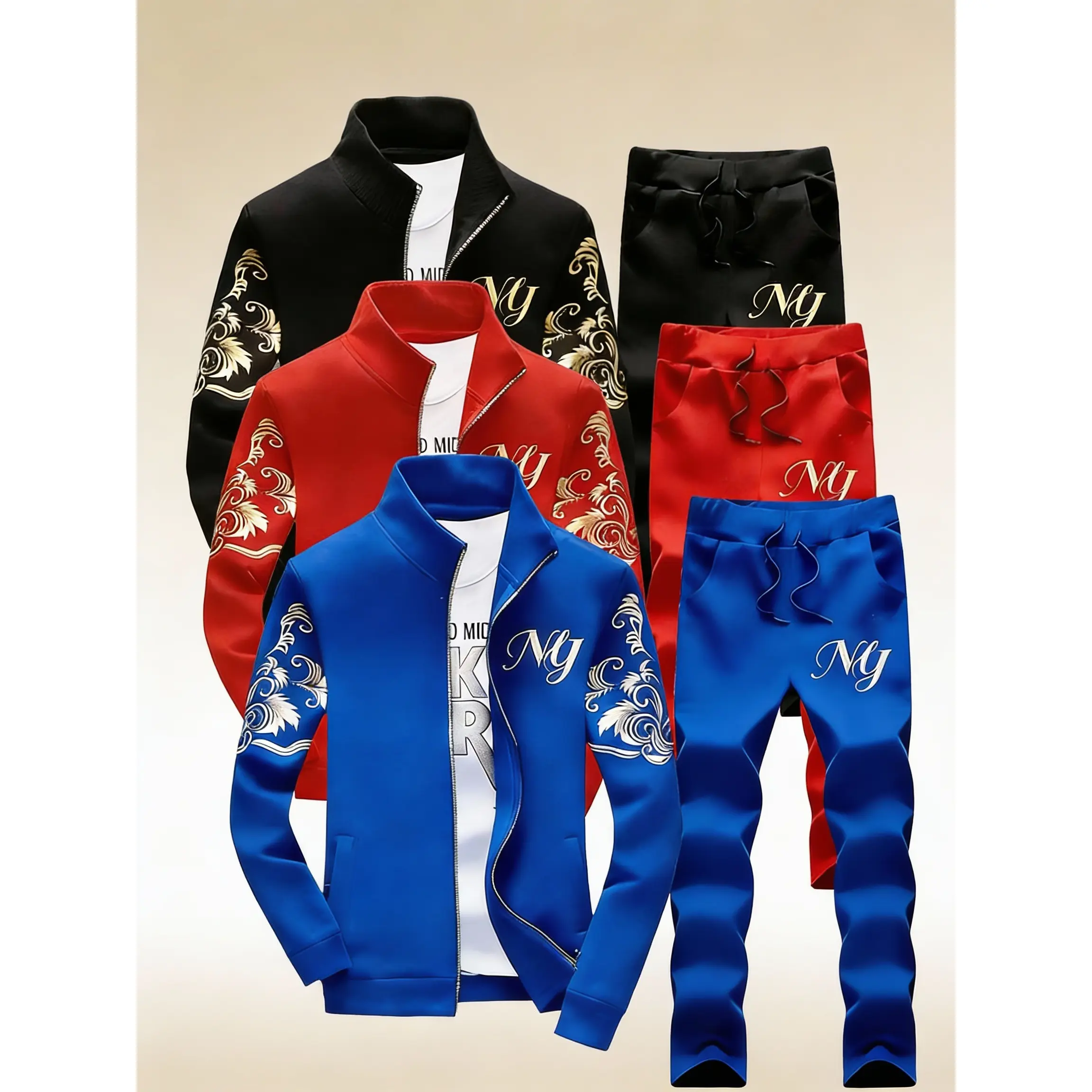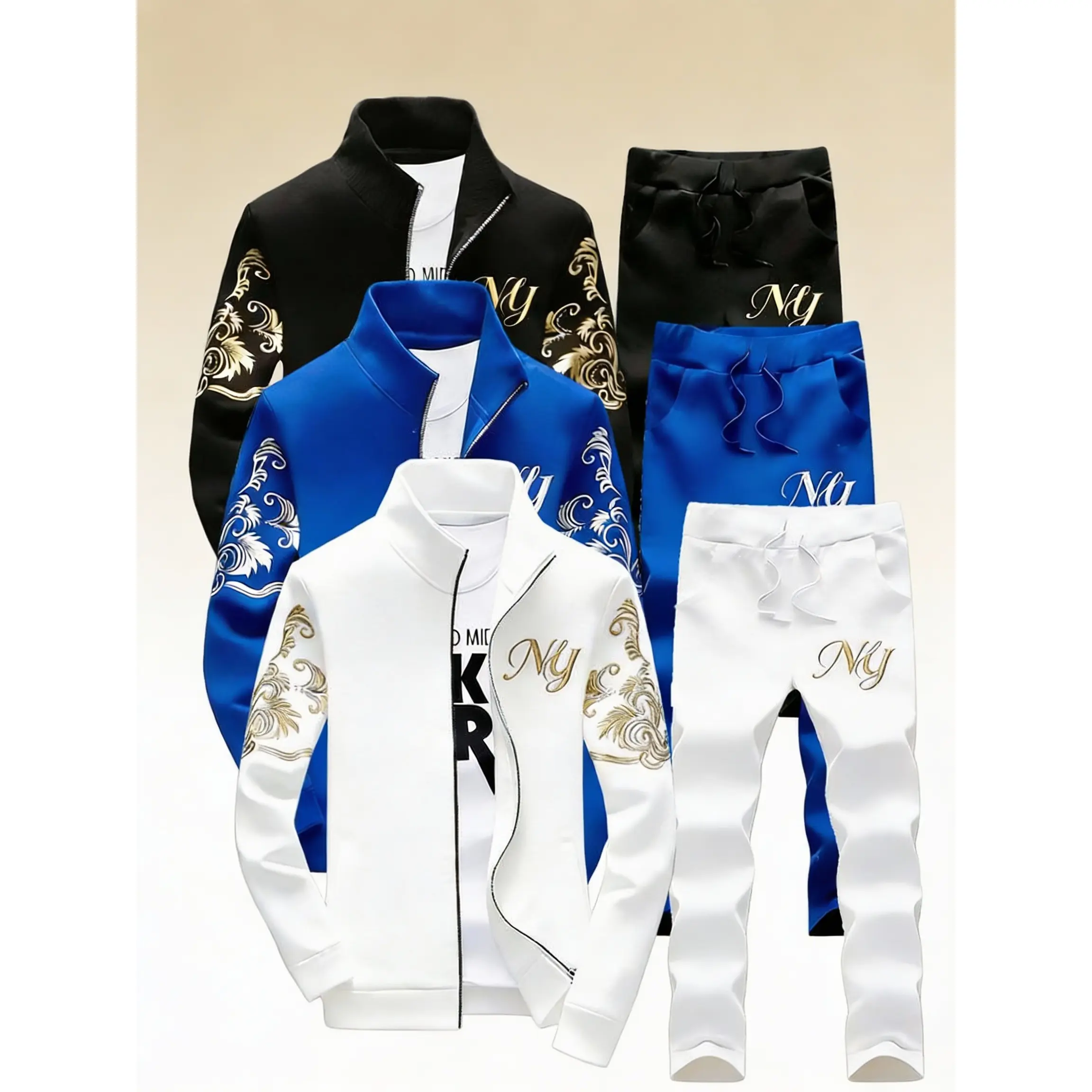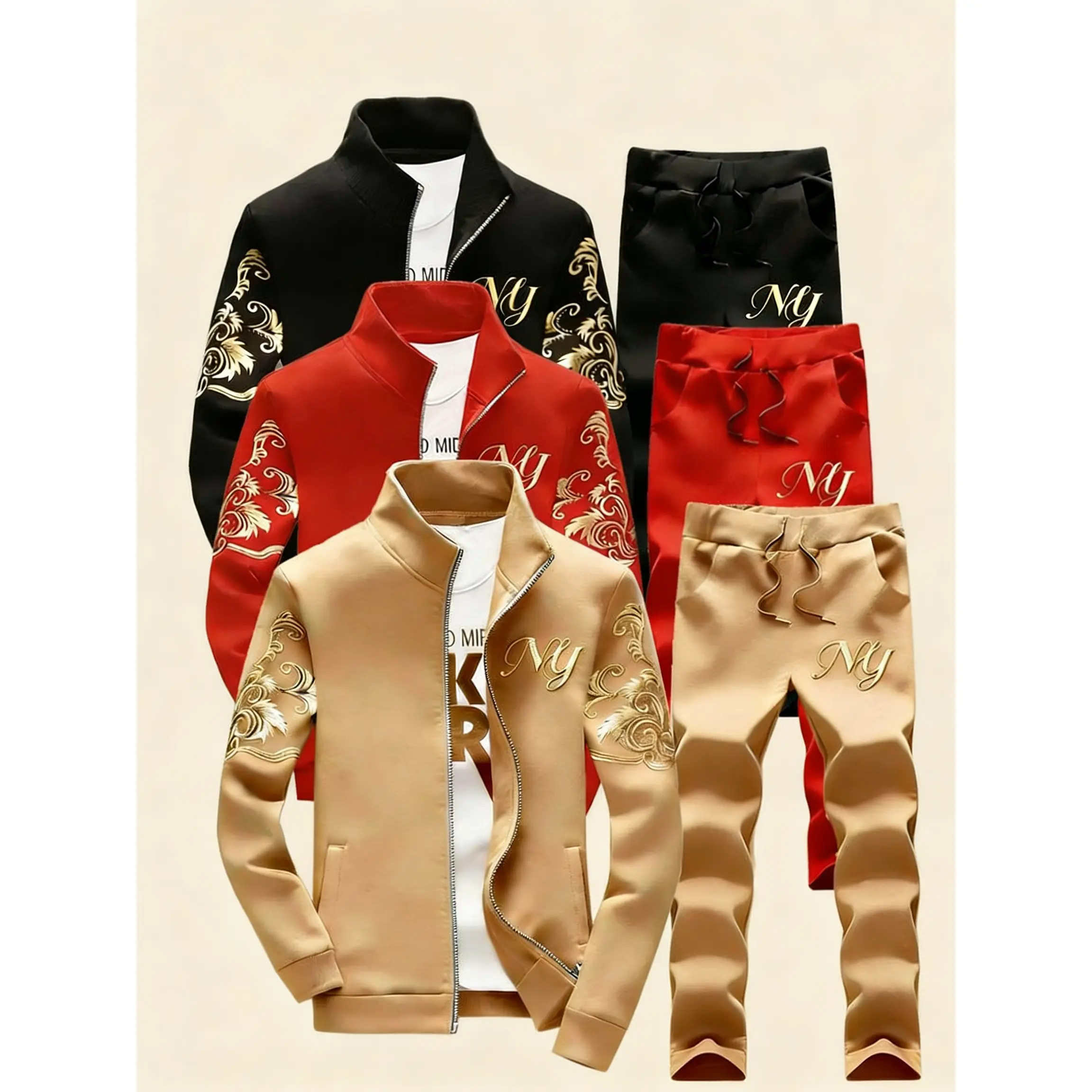 Fashion Men's 3-Piece Coordinated Set with Embroidered Logo and Zipper Closure in Black Red and White