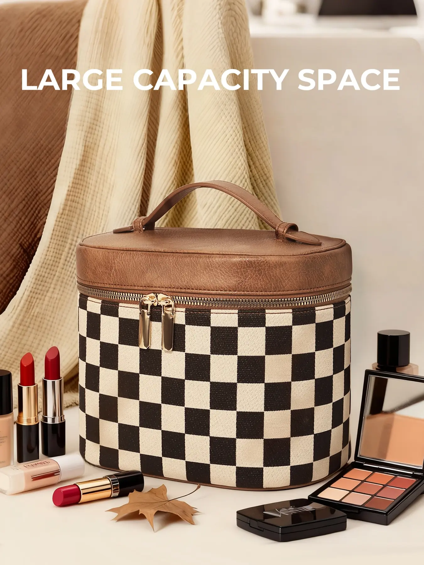 Women’s Fashionable Checkered Design Makeup Bag, Durable & Stylish Cosmetics Organiser Case, Perfect for Daily Use & Gift #coachhamptonsbag #pursemusthaves #magicpocketlazymakeupbag #bestcarryon #travelmakeup #pursegoals #smallmakeupvanity #versatilepurse #calpakcosmeticbag #miuvanitysetwith24color