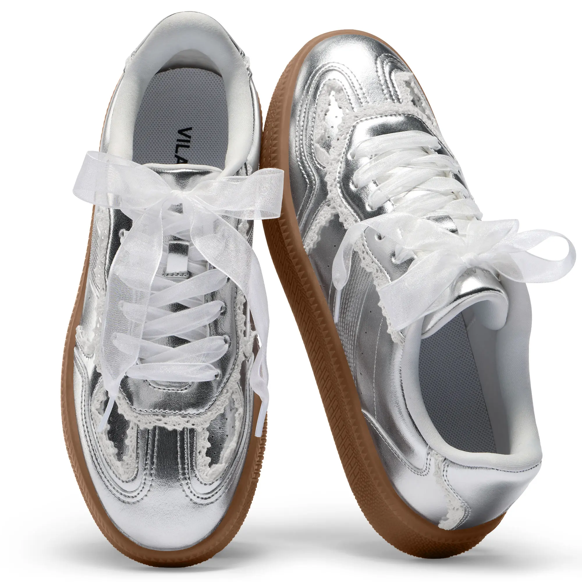 Vilanva Women's Lace Detail Fashion Sneakers Comfortable Casual Dress Sneakers with Retro Gum Sole Walking Trendy Footwear