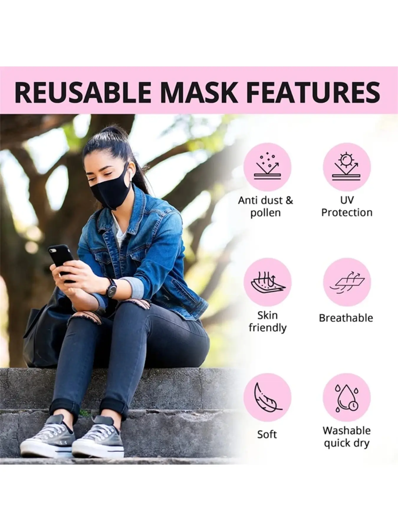 5. Fashion Solid Earloop Mask Spring Dustproof Washable Reusable Face Mask Unisex Outdoor Travel Breathable Mask