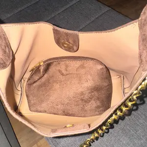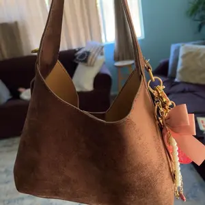 Perfect bag, EXACTLY how it looks in the pictures! Nice suede material. Pouch comes with it is a great size for small things or your keys. You can double loop the chain so it hangs on the side as decoration for the side of the bag.