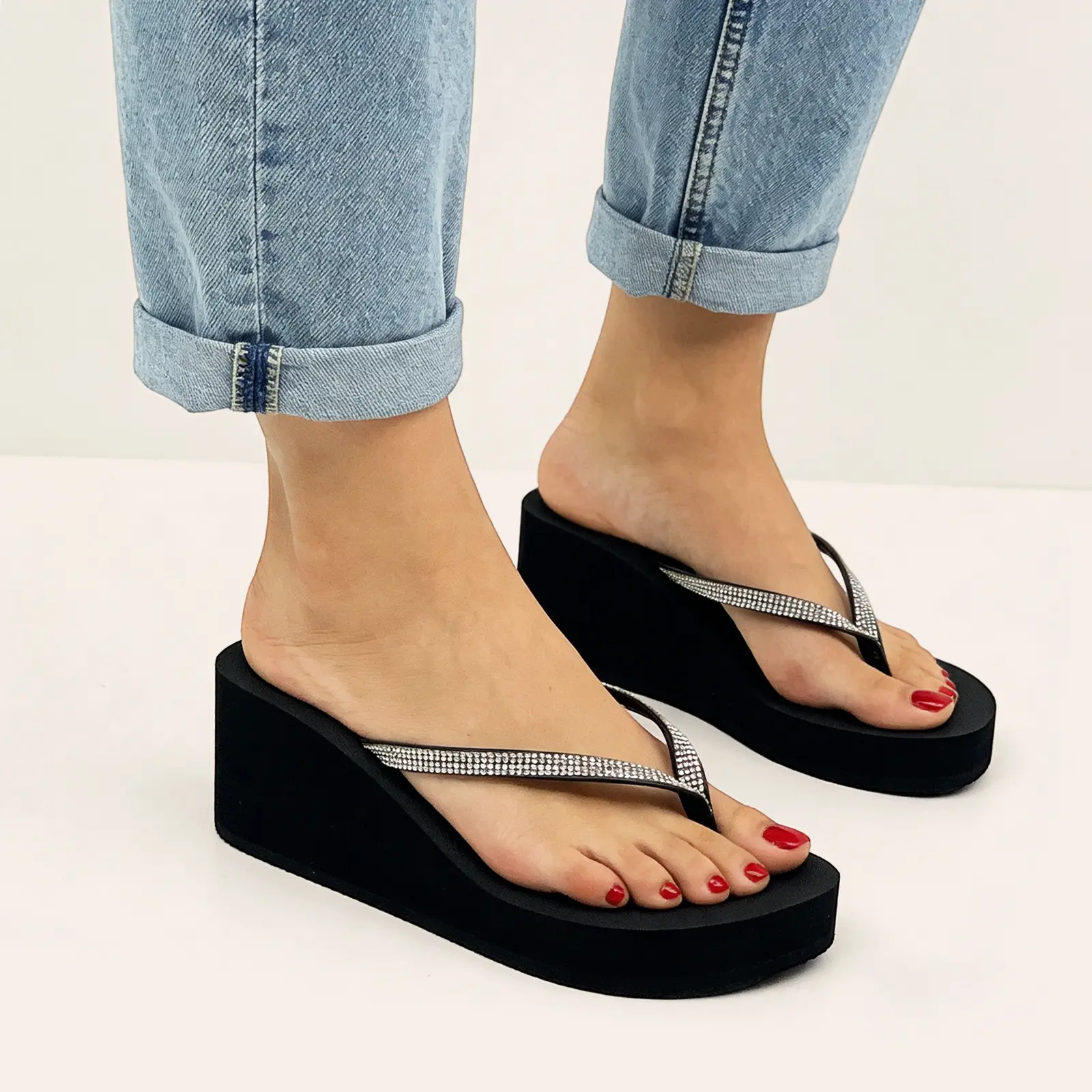 🌟 Fashionable Black Rhinestone Decorated Platform Sandals 🌟