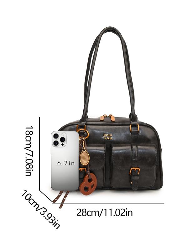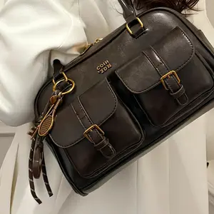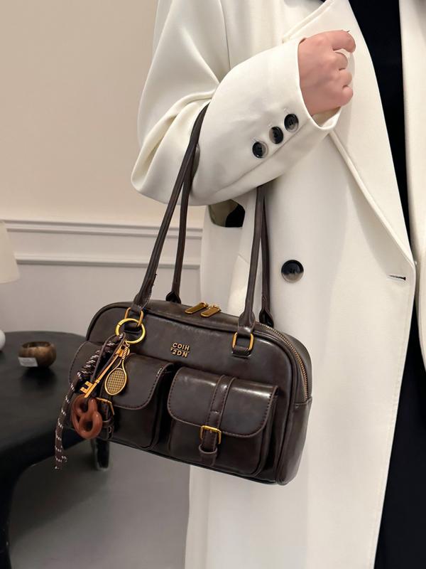 Fashionable and casual Boston bag, stylish bowling bag, retro soft leather shoulder handbag, simple and niche shoulder underarm bag, Flap Shoulder Bag, suitable for daily use and other scenarios.