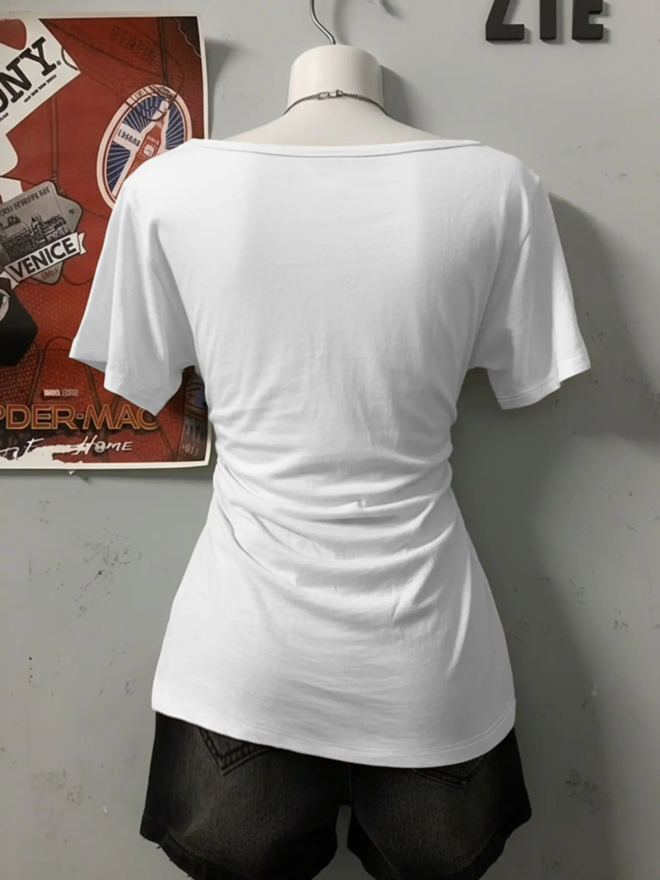 【Graphic Printing】: Displayed with a bold letter and number print, making the T-shirt visually distinctive and eye-catching.