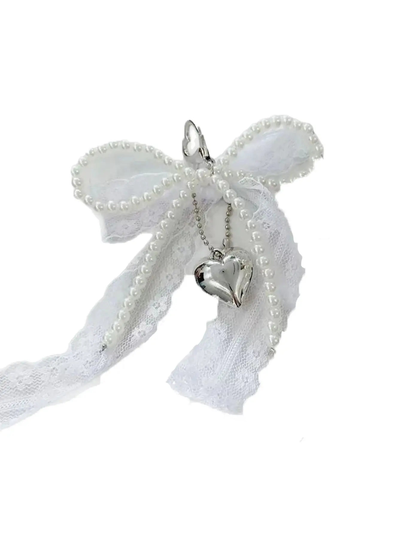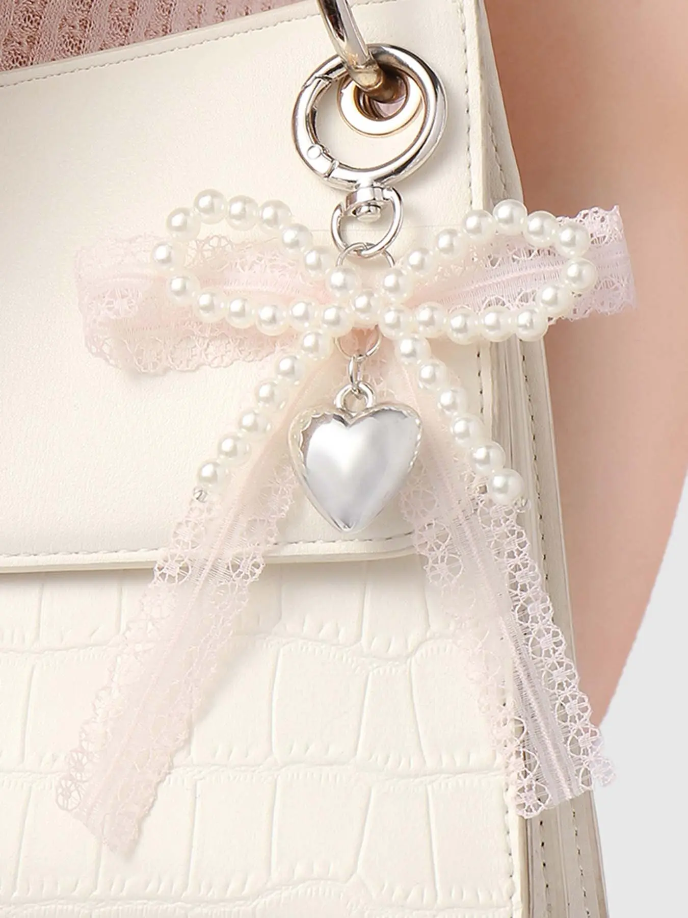 Fashionable and exquisite lace bow pendant, pearl heart-shaped pendant bag keychain pendant, sweet and cute accessories princess style, niche fashion all-match, ladies bag pendant jewelry, school bag pendant decoration, Charms for bags