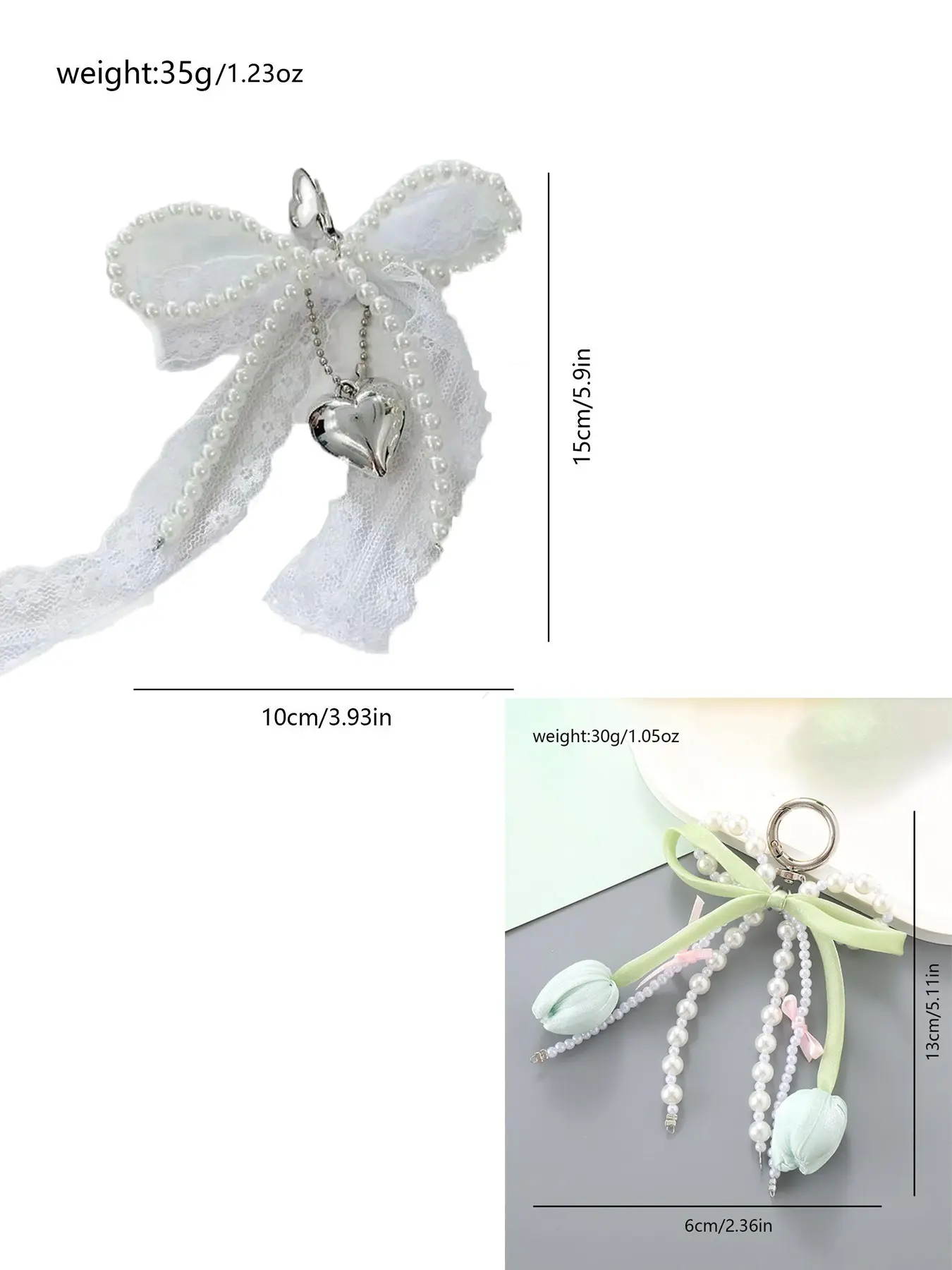5. Fashionable and exquisite lace bow pendant, pearl heart-shaped pendant bag keychain pendant, sweet and cute accessories princess style, niche fashion all-match, ladies bag pendant jewelry, school bag pendant decoration, Charms for bags