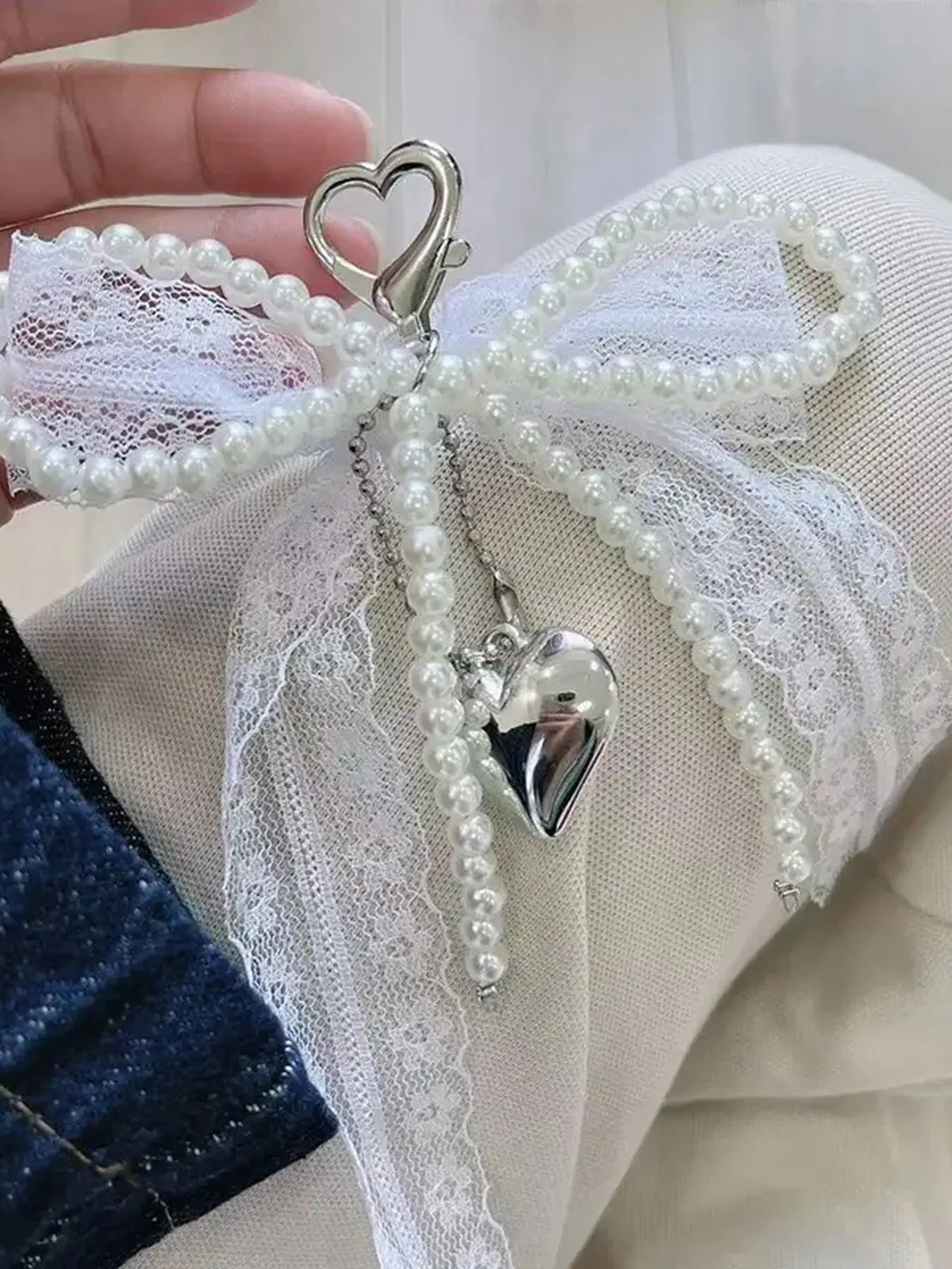 Lace bow bag charm, princess vibe#LaceBowCharm#PrincessStyle#TikTokFashion#BagAccessories#PearlHeartPendant