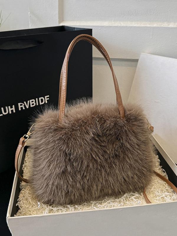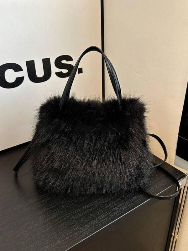 Fashionable Imitation Fur Small Casual Trendy Handbag with Grip Handle and Shoulder Strap, Stylish Design, Multiple Color Options, Perfect Daily Accessory