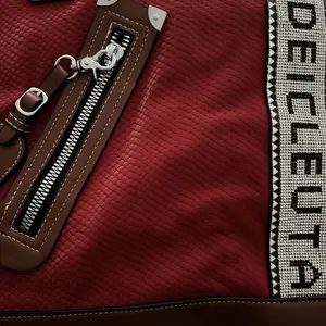 Decoration on short handle above DEI…” is crooked. The crossbody strap is missing. Looks like this item was a return from a prior purchase. This is the second time I had to return this bag in the red color.