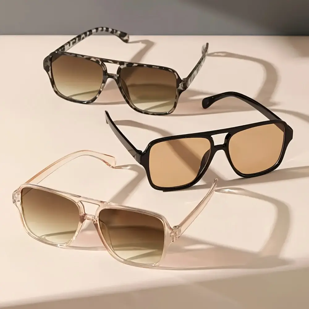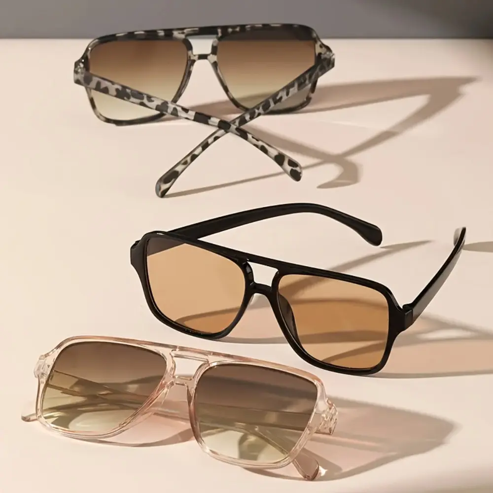 Fashionable Rectangular Plastic Glasses for Women with Leopard Print Detail, Dual Bridge Design, Reflective Lens, PC Material, Ideal for Daily Wear