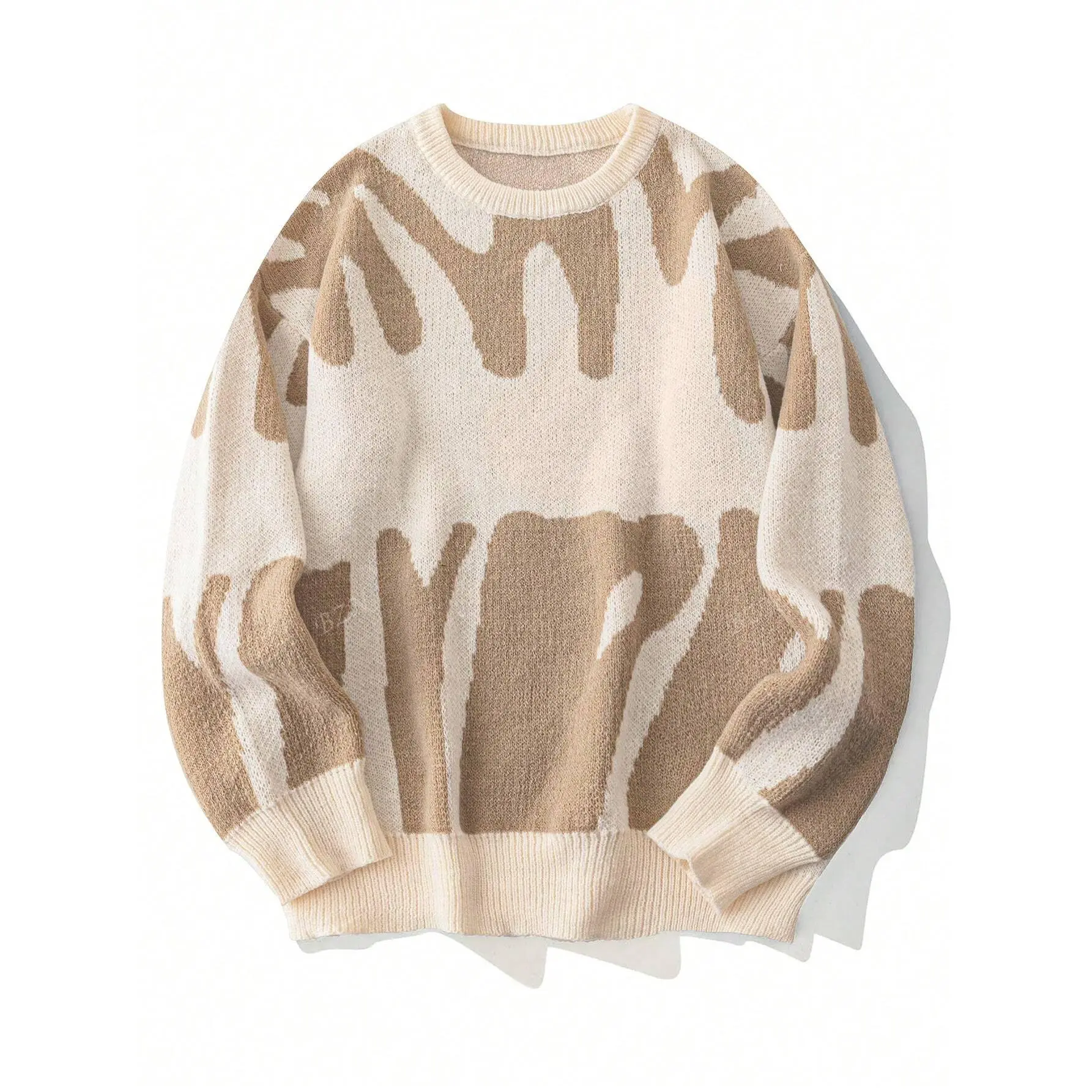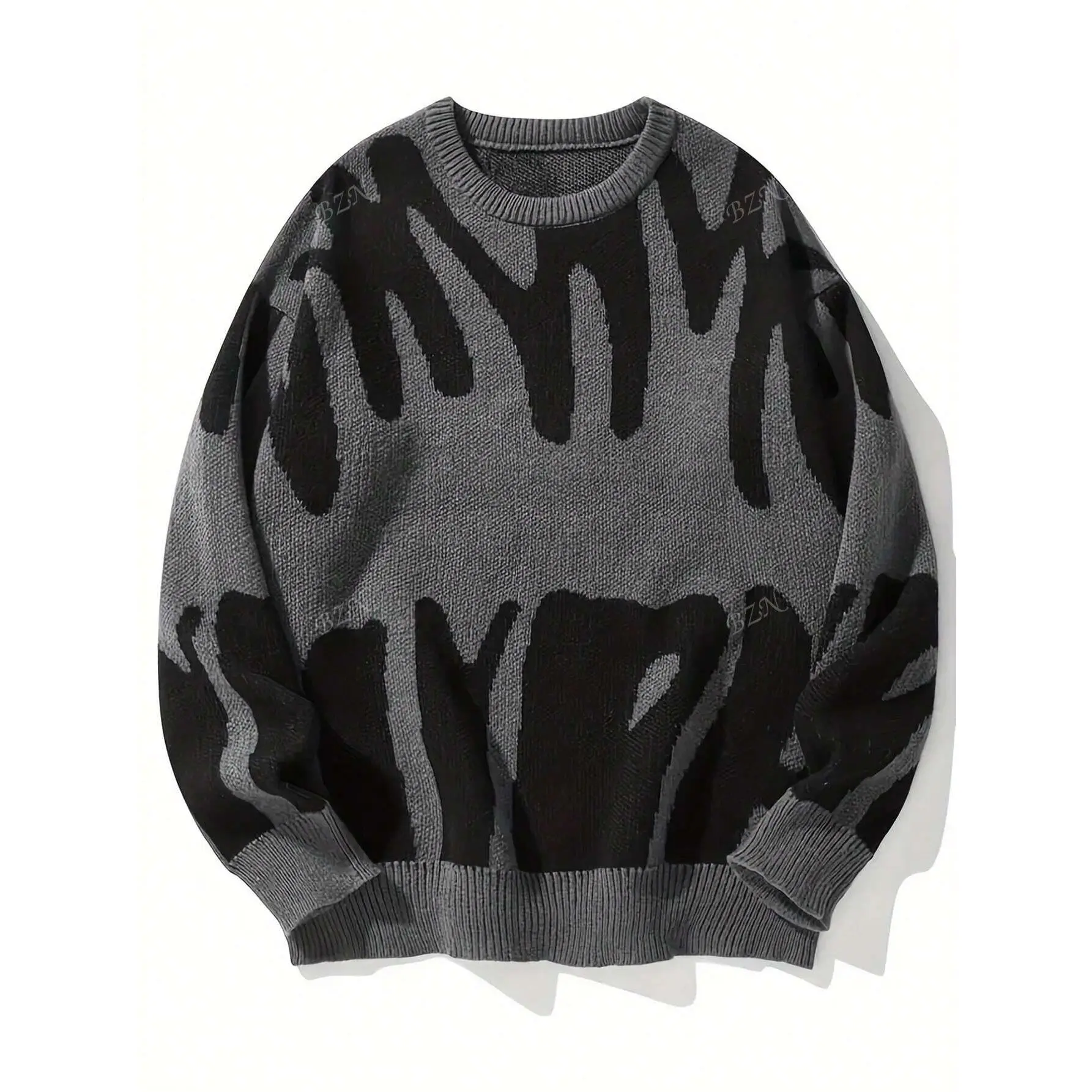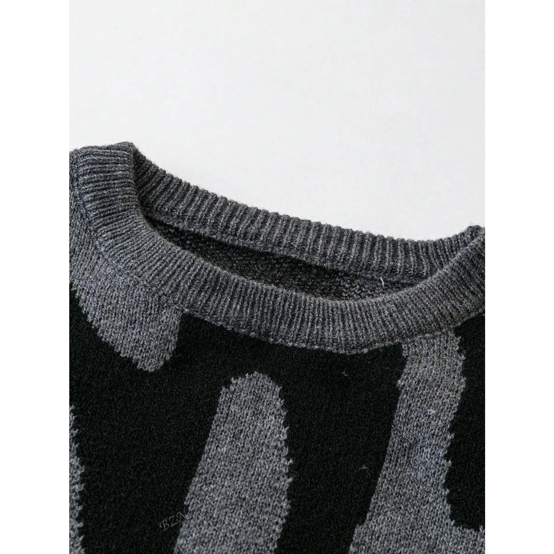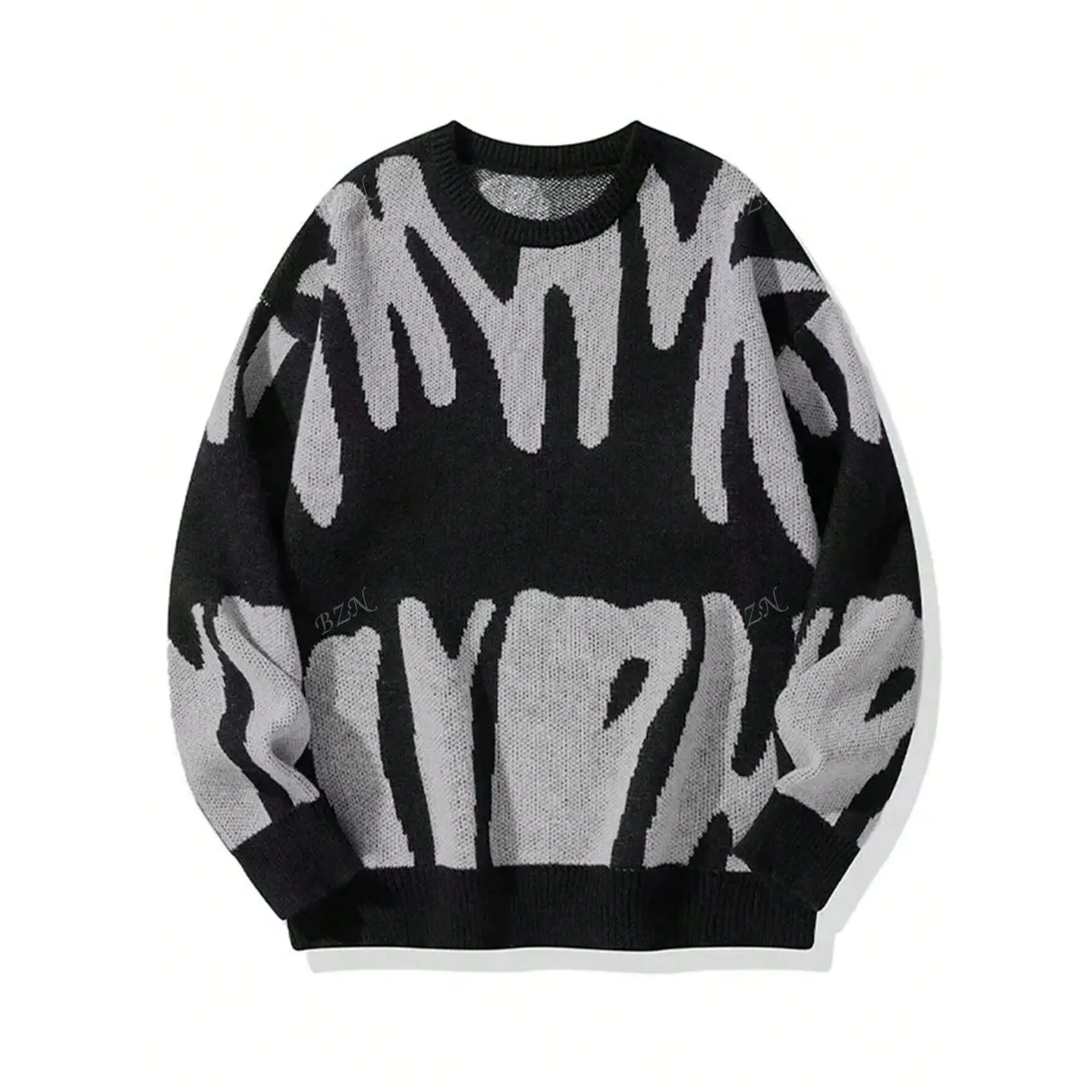 BIGWIG Fashion Pattern Crew Neck Long Sleeve Casual Pullover Graphic Drop Shoulder Monogram School Streetwear Spring Break Outfits Knit Sweater