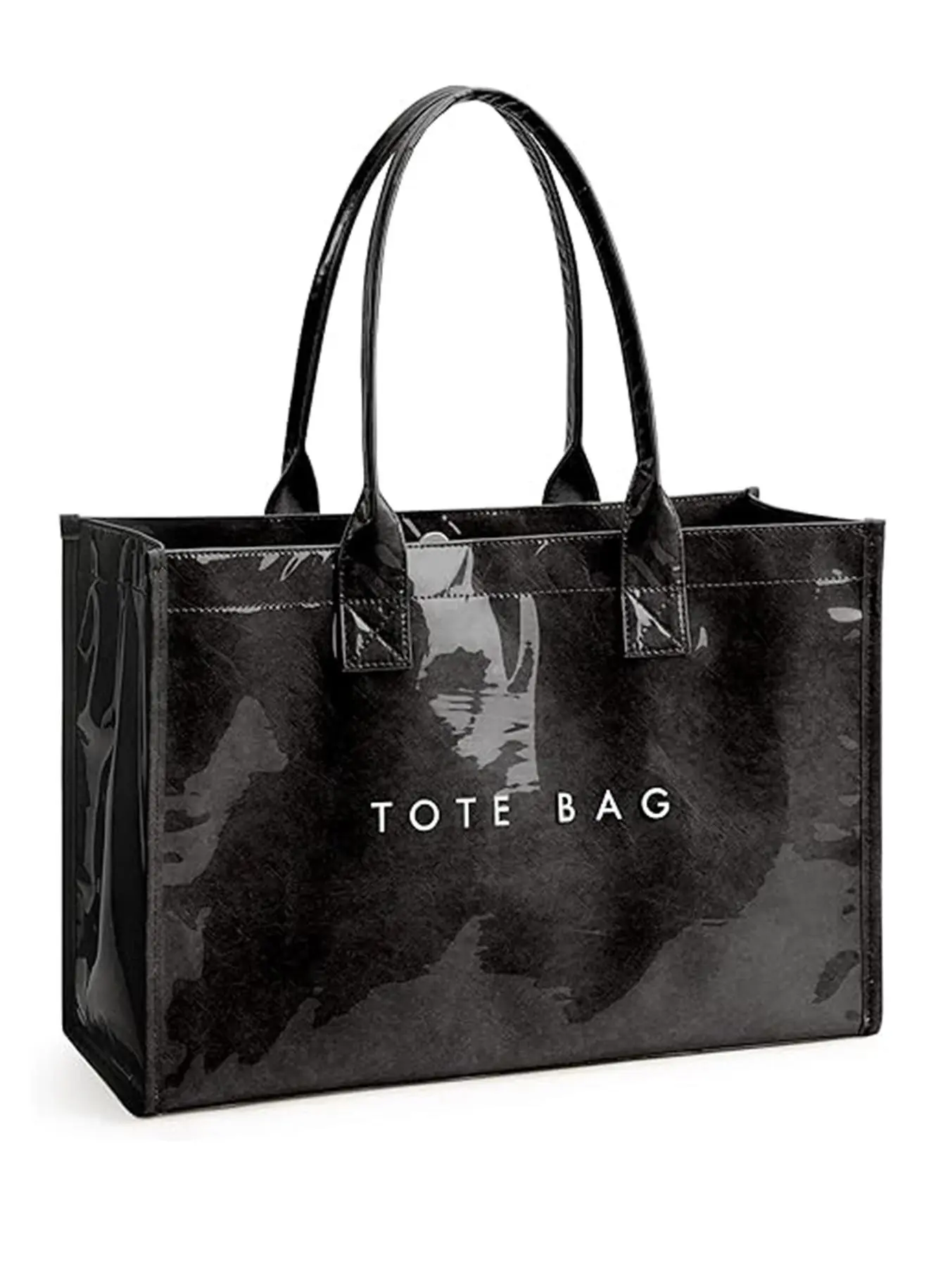 5. Fashionable Transparent Tote Bag, Casual Large Capacity Handbag for Women, Minimalist Stylish Commuter Purse, Stylish Square Bag, Shiny Stylish Bag