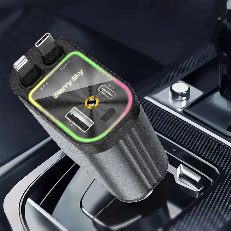 Tired of messy cables and slow charging on the road? Meet your new favorite travel buddy: the 66W Starlight 4-in-1 Retractable Car Charger. This handy gadget features built-in double cables compatible with both iOS and Type-C devices, so you can power up your phone or tablet without swapping cords. The 31.5-inch retractable cable gives you just the right length to reach anywhere in your car while keeping things tidy with automatic retraction.