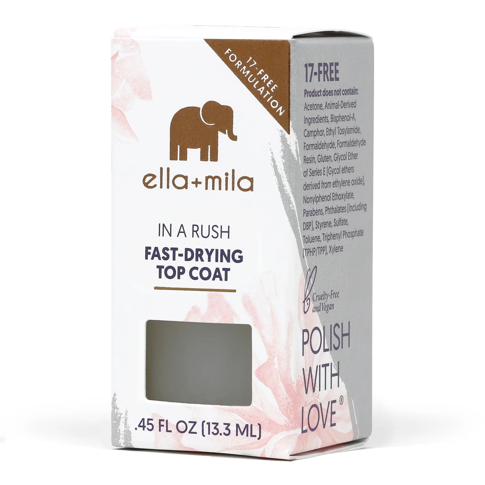 If busy and need to fast dry your mani and/or pedi use Ella & Mila In A Rush Fast Drying Top Coat. Necessary for nailcare and to finish off the perfect Ella & Mila mani and/or pedi.