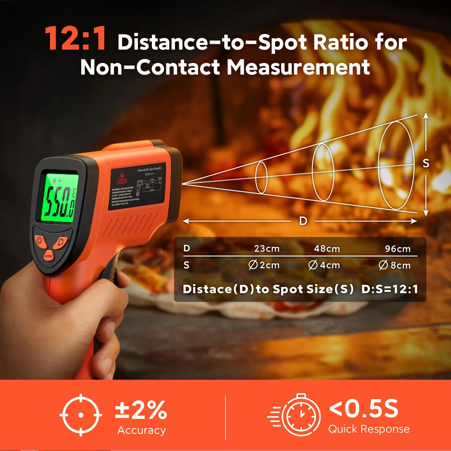 12:1 Infrared Thermometer Temperature Gun, Non-Contact Laser IR Temp Gun (-58 ° F to 1022 ° F/-50 ° C to 550 ° C), for Cooking, Pizza Ovens, BBQ, Grilling, and Reptiles