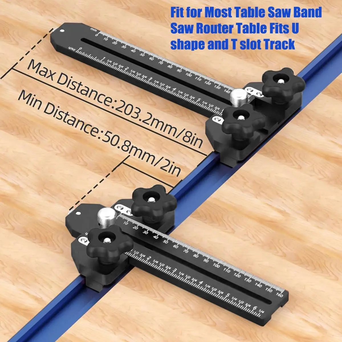 Designed for versatility, this guide fits standard 3/8" x 3/4" T-slots, U-shaped slots, and 1/4" x 3/8" T-slots. It is fully compatible with table saws, band saws, and router tables, making it a must-have woodworking accessory.