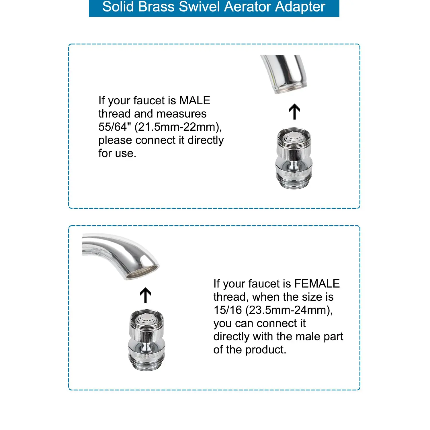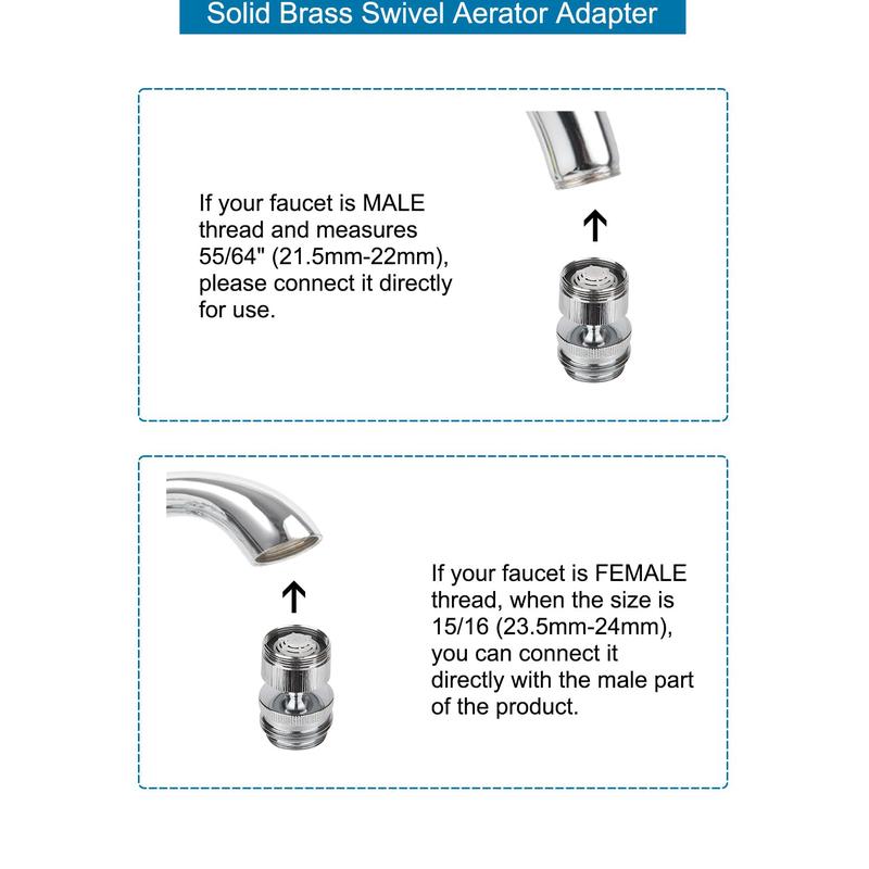 ·[Extra Male Adapter] We also provide an extra male adapter to connect male 15/16 inches x 27 thread to male 15/16 inches x 27 thread. Please note that if your faucet has a female thread 15/16 inch x 27 thread, we recommend you connect the female to the female converter only. Please make sure to double-check if your faucet can fit before ordering.