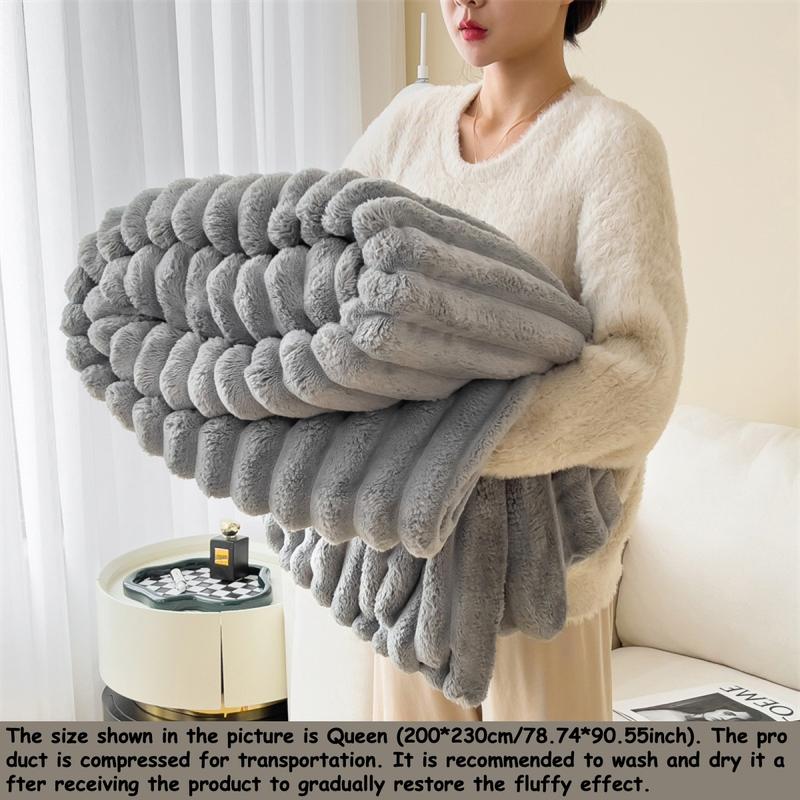 Absolutely love this blanket. The faux rabbit fur is incredibly soft and plush and feels very high quality. The pink color is beautiful and cozy, and the size is perfect for curling up on the couch or bed. It feels luxurious and warm without being too heavy. Five stars from me.