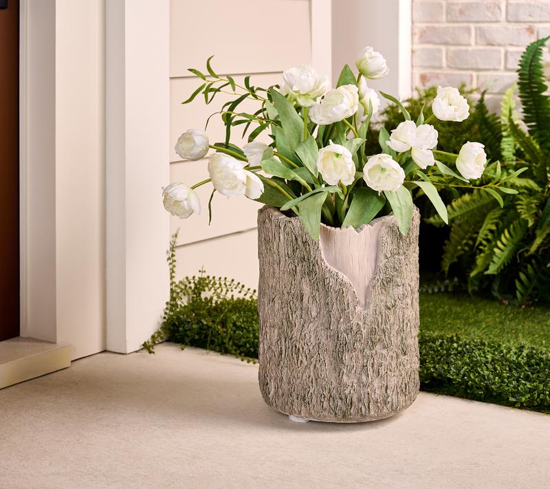 ·Faux wood planter; flowers (shown) not included