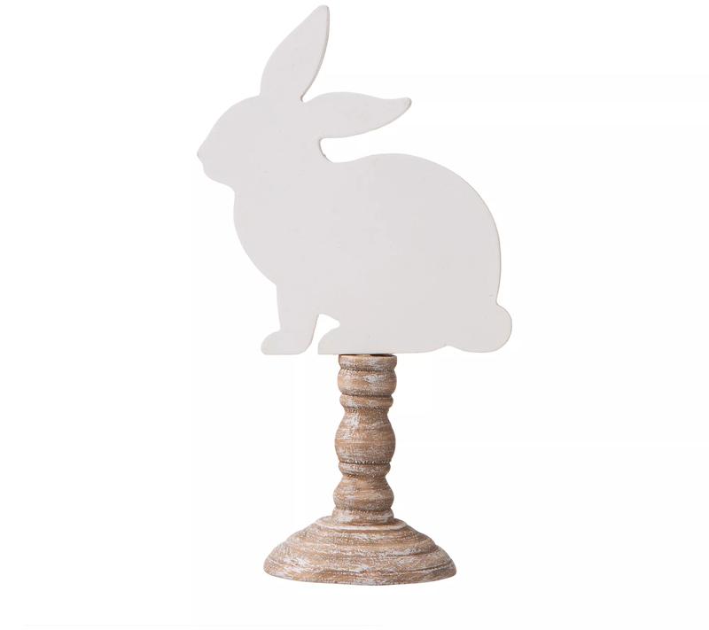 5. Glitzhome Easter Bunnies Sitting on Faux CandleSticks S/2