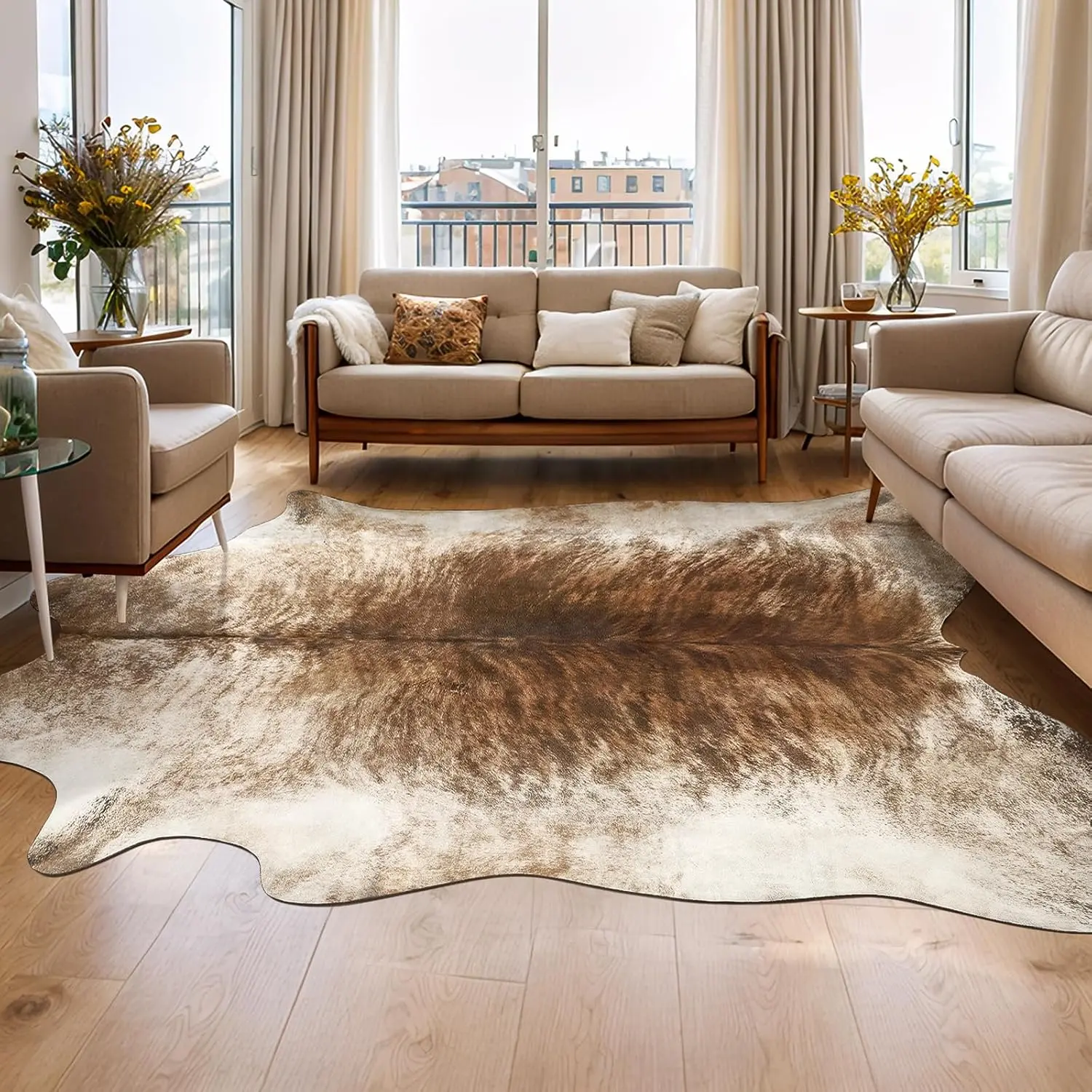 ·EASY TO CLEAN - Simply vacuum the cow print rug with a handheld vacuum for daily cleaning. If you want to wash, just add some mild detergent, gently wash the cow rug by hand or washing machine, then put the cow rug in a ventilated place to dry. Please try not to dryer dry cowhide rugs or expose brown rugs to the sun to extend the value or lifespan of printed rugs.