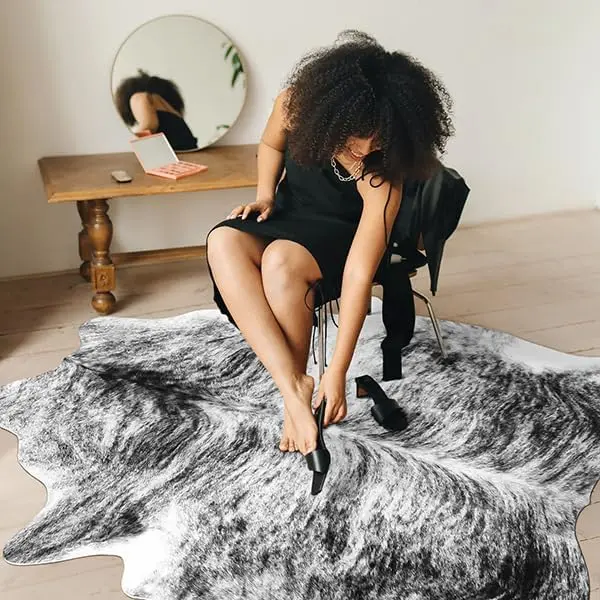 ·PREMIUM MATERIAL - 100% polyester cowhide rug with about 0.25 inch (0.6 cm) hair length, soft, comfortable, durable, easy to clean and maintain. Not to mention that it looks and feels great, and the softness is unmatched.