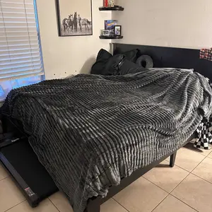 it’s a nice comfy blanket very comfortable love the black and the shape and size of it i just think it should be alittle bit thicker<3