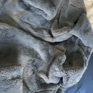 Color was more blues than grey I took a picture of my gray hat next to it in the middle so you can see the color difference between gray and this jacket it’s very thin flimsy feels like if it’s washed it may not look the same after lots of fur fluff coming off of it floating in air. Also runs big